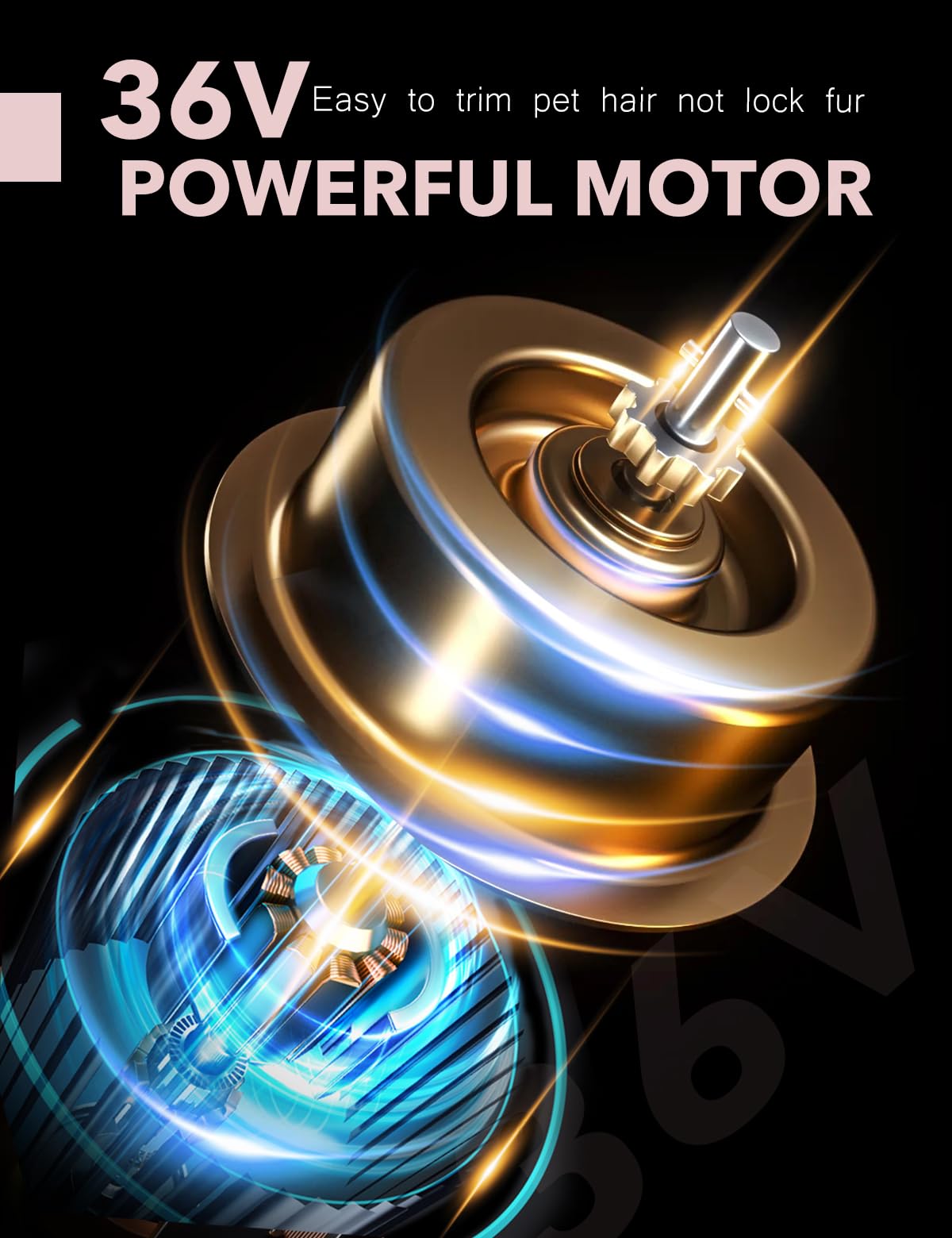 What If The Ordinary Dog Clippers Can'T Shaver The Dogs Hair? What If There Is Not Enough Power To Shaver Long-Haired Animals? Is It Difficult To Clip?&Nbsp; Now,It'S Time To Choose Hansprou Professional Dog Grooming Clippers Kit&Nbsp; Hansprou Large Pet Hair Clippers Are Specially Designed For Trimming Of All Varieties Animals 1. 36V High-Speed High-Power Motor: Strong Power, Non-Sticky Hair, Hansprou Dog Electric Shaver Push Equipped With About 10Ft Long Line, Plug-And-Play, No Need To Charge, Provide Strong And Stable Power, Can Quickly Trim Pet Hair, Smooth Cut 2. Using High-Quality Titanium Alloy Blade + Ceramic Movable Blade Provides Excellent Cutting Performance. Special 35-Tooth Cutter Heads Are Sharper, More Durable And More Efficient.Close Slot Spacing Is Conducive To Controlling Single-Tooth Hair. The Less Single-Tooth Gross Hair, The Easier It Is To Cut Hair. Safe Rounded Design, Will Not Harm The Pet Skin 3. Low Vibration + Low Noise Design: Pet Clipper Works With Noise Of Only About 50 Decibels, Helping Pets Feel Relaxed, No Longer Afraid Of Hair Cut 4, Five Levels Of Adjustable Shift, Rotation Adjusting Ring Adjusting Cutter Head, You Can Control The Length Hair In 0.8-2 Mm Without Using Guard Combs 5. Special 1-2-3-6-9-12-15-18 Mm Guard Comb For New User, Even If You Do Not Have Any Experience Of Shaving Pets, Do Not Be Afraid Of Mistakes, Use Guard Comb, Your Shaved Pet Hair Is Neat And Uniform, Not Pitted 6. Aluminum Alloy Fuselage, Solid Fuselage With Anti-Skid Pattern, Comfortable Handle7. One-Year Quality Assurance Without Worrying About Quality Problems
