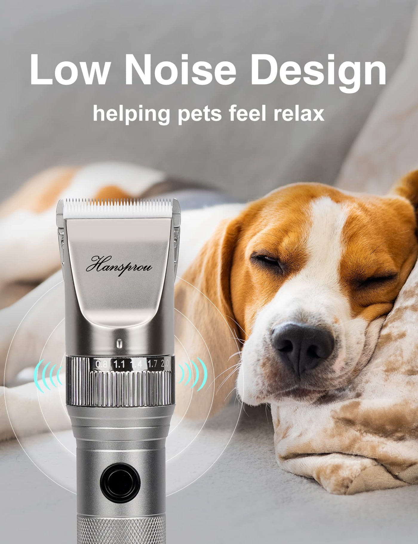 What If The Ordinary Clippers Can'T Shaver The Pet'S Hair?What If There Is Not Enough Power To Shaver Long-Hair Animals?Is It Difficult To Clip?&Nbsp;Now, It'S Time To Choose Hansprou Professional Dog Grooming Clippers!Dog Grooming Clipper Are Specially Designed For Trimming All Varieties Animals.1. 12V High-Speed High-Power Motor:Hansprou Dog Electric Clippers Equipped With About 2.5 Meters Long Line, Plug-And-Play, Can Quickly Trim Pet Hair Smoothly.2. Using High-Quality Titanium Alloy Blade + Ceramic Movable Blade Provides Excellent Cutting Performance. Special 35-Tooth Cutter Heads Are Sharper,Durable And Efficient.Safe Rounded Design, Won'T Harm The Pet Skin.3. Low Vibration + Low Noise Design: Pet Clipper Works With Noise Of Only About 50 Decibels, Helping Pets Feel Relaxed.4. Five Levels Of Adjustable Shift, Rotation Adjusting Ring Adjusting Cutter Head, You Can Control The Length Hair In 0.8-2 Mm.5. Special 1-2-3-6-9-12 Mm Guard Combs And Left, Right Combs For New User, Even If You Do Not Have Any Experience Of Shaving Pets,Your Shaved Pet Hair Is Neat And Uniform.6. Note: Before The Clippers Leave Factory, Will Test The Sharpness Of The Blade. Use Cotton Thread Instead Of Pet Hair For Cutting. If You Get Cotton Thread On The Blade, It'S Test Residue.7. One-Year Quality Assurance Without Worrying About Any Problems.