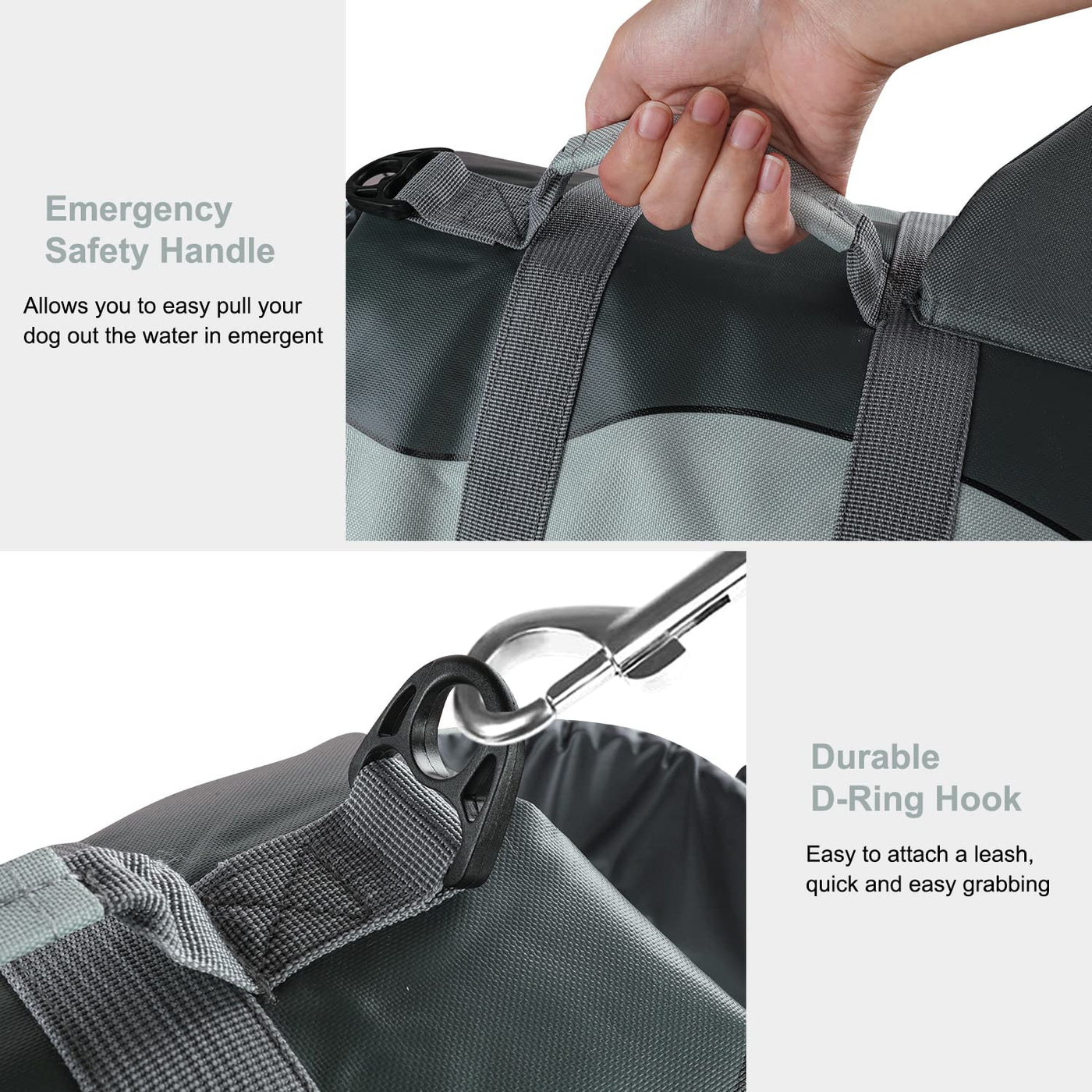 CONVENIENCE: Adjustable belt and quick-release buckles to make your dog fit comfortably easy to put on and take off. Handle on top for quick and easy grabbing. The Heavy-duty D-ring Hook is perfect for dog leash.