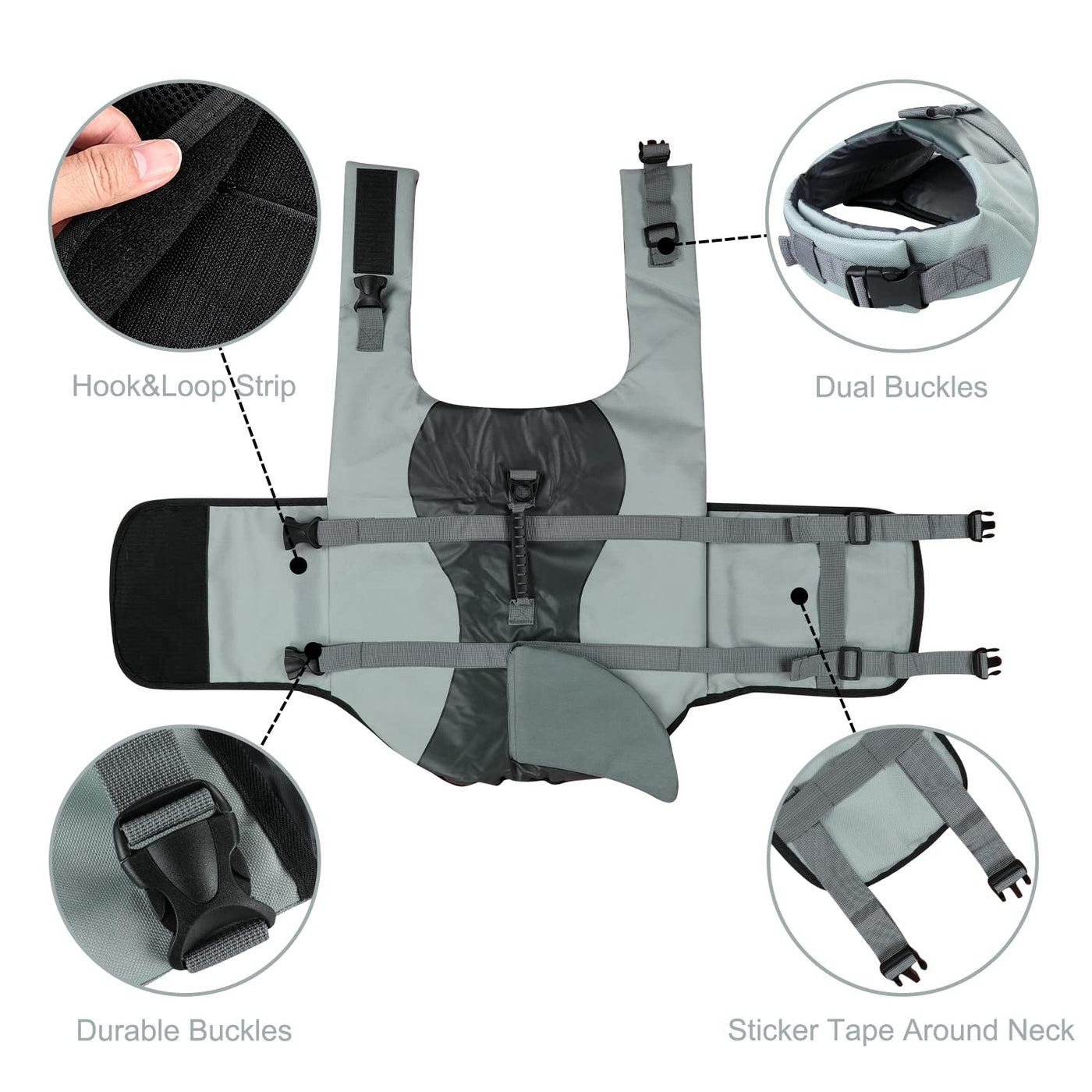 Haocoo Dog Life Jacket Vest Saver Safety Swimsuit Preserver With Reflective Stripes/Adjustable Belt For Dog (Xx-Large, Shark)