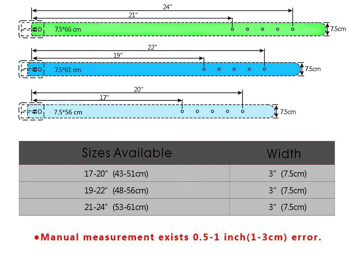 100% Quality Guarantee, Brand new leather dog Collar leash lead Leash Size: 28'(70cm) total length Chain:5mm diameter,20'(50cm) length(include the hook). Hand strap:1'(2.5cm)width,8'( 20cm) length. Collars Size: Medium size for Wide 3 inches, Length 22 inches(7.5*56CM) Neck 17-20 inches Large size for Wide 3 inches, Length24 inches(7.5*61CM) Neck 19-22 inches X-Large size for Wide 3 inches, Length26inches(7.5*66CM) Neck 21-24 inches Note: Before you order,Be sure your dog's neck is suitable for this size (That's very important). Package Included: 1 x Dog Collar+Leash set