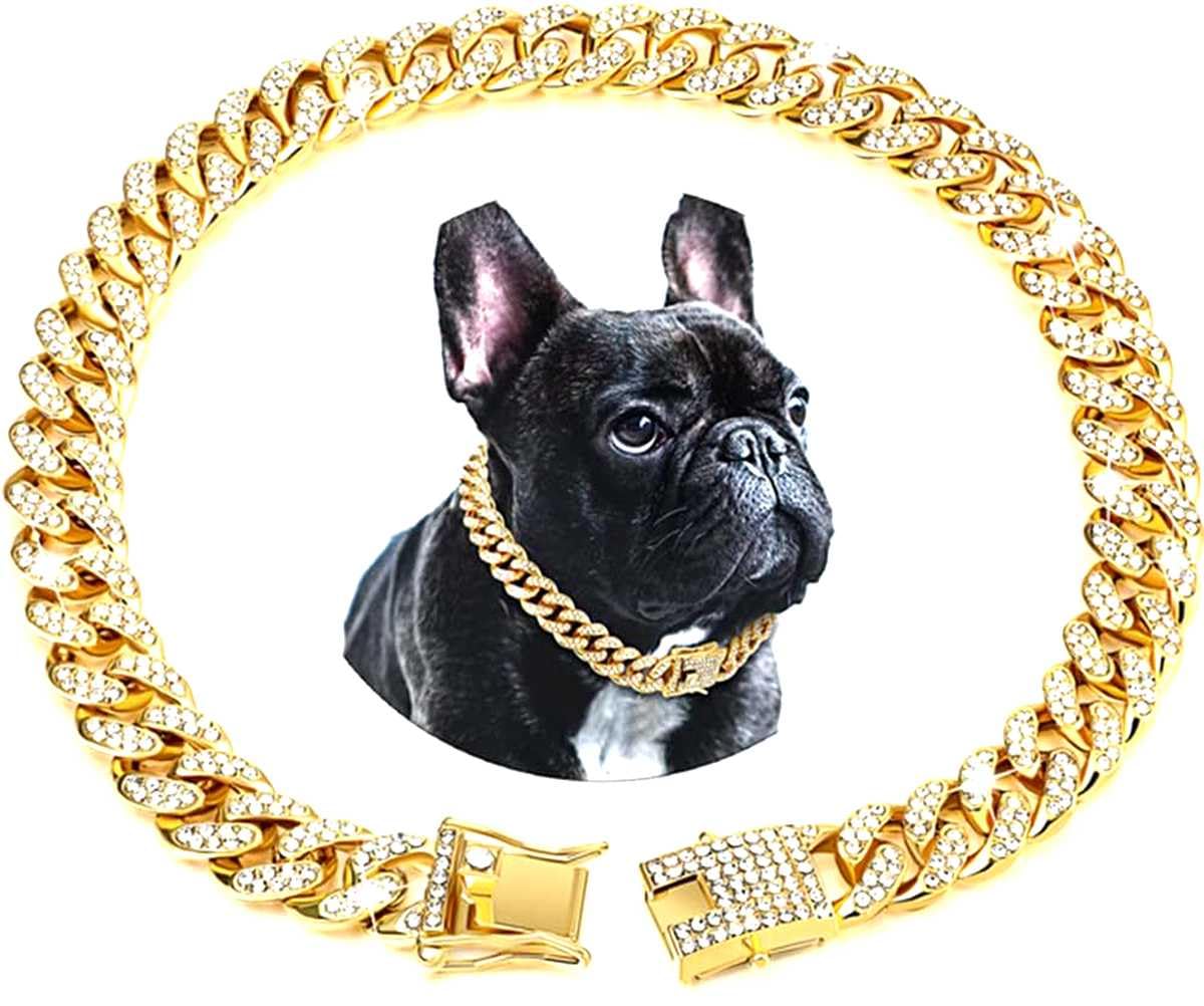 Haoyueer Diamond Cuban Link Dog Chain & Collar - 13Mm Wide Metal Cat Chain Pet Crystal Jewelry Accessories For Puppy To Large Do