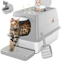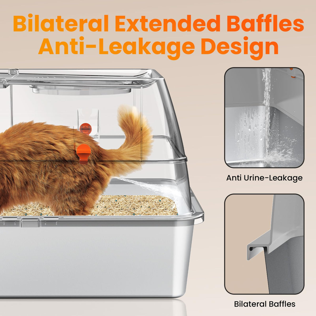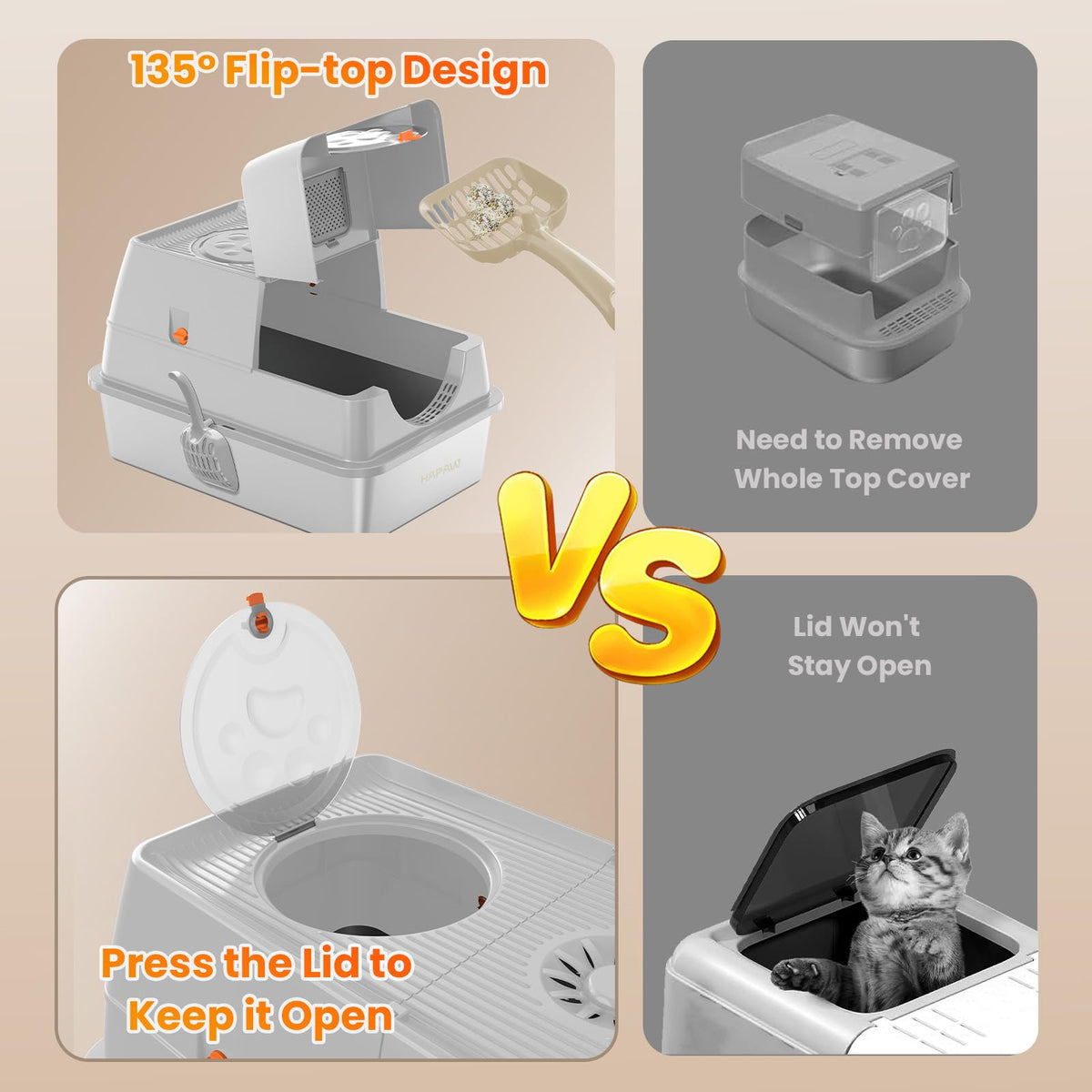 Hapaw Stainless Steel Litter Box With Lid, 135 Flip-Top Extra Large Cat Litter Pan, Enclosed Metal Litter Box With Litter Scoop