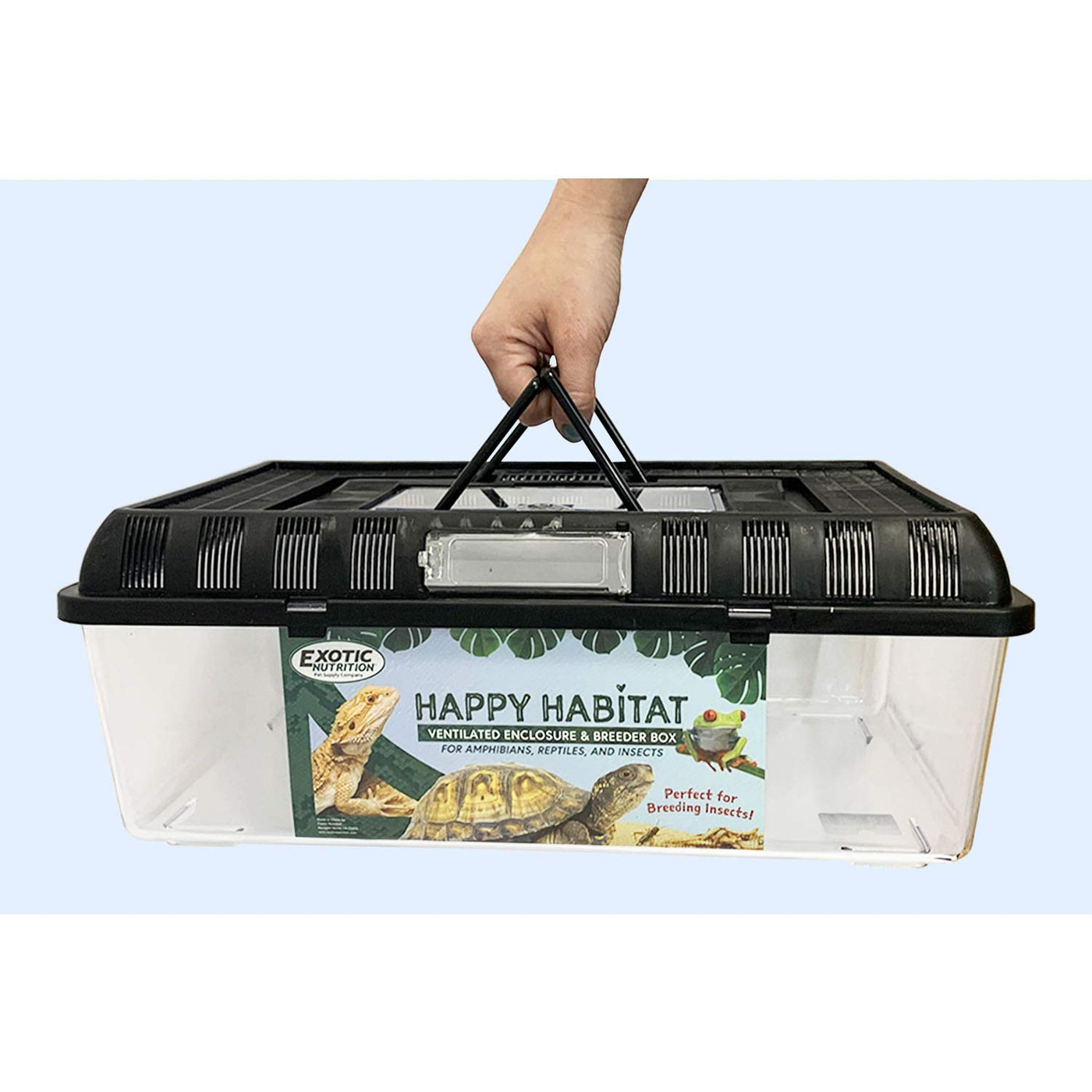 Exotic Nutrition'S Happy Habitat Is A Ventilated Enclosure &Amp; Breeder Box For Live Feeder Insects, Reptiles, And Amphibians.&Nbsp;Measurements: 16.5'' X 10.25'' X 6.25''Features:? Durable -This Enclosure Is A Durable Storage And Breeding Container Ideal For Housing Up To 5,000 Live Mealworms.&Nbsp;? Easy - Each Clear, Plastic Container Is Stackable, Has A Self-Locking Lid And Removable Handle? Convenient - Feeding Window And Airline Tubing Holes In The Lid? Versatile - Easy To Clean, And Can Be Used Wet Or Dry.&Nbsp;