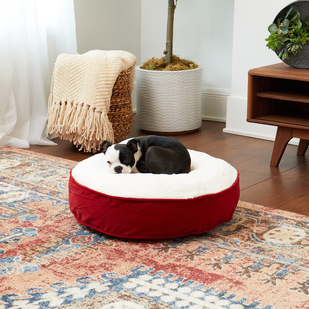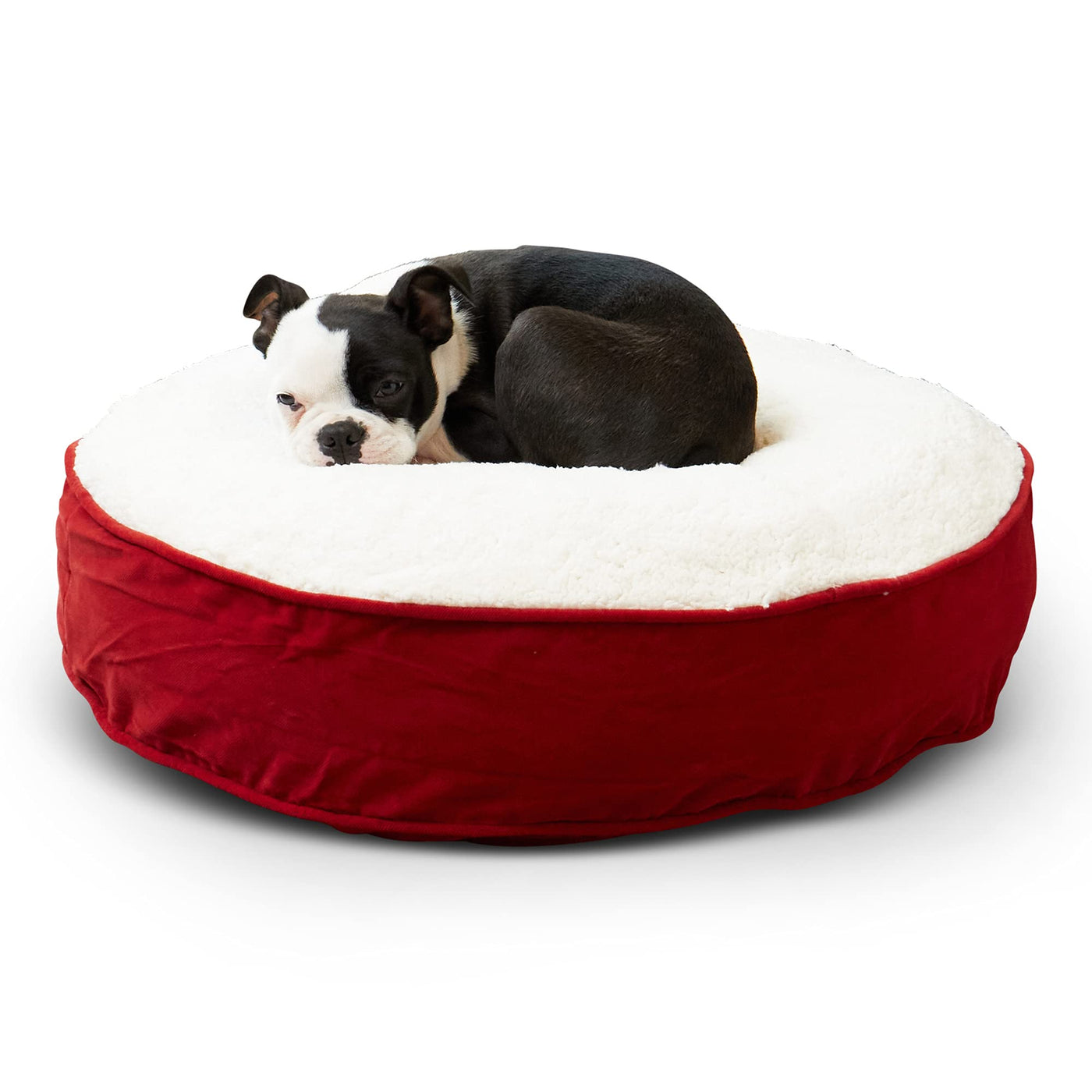 Happy Hounds Scout Deluxe Round Pillow Style Sherpa Dog Bed, Extra Small (24 X 24 In.), Red