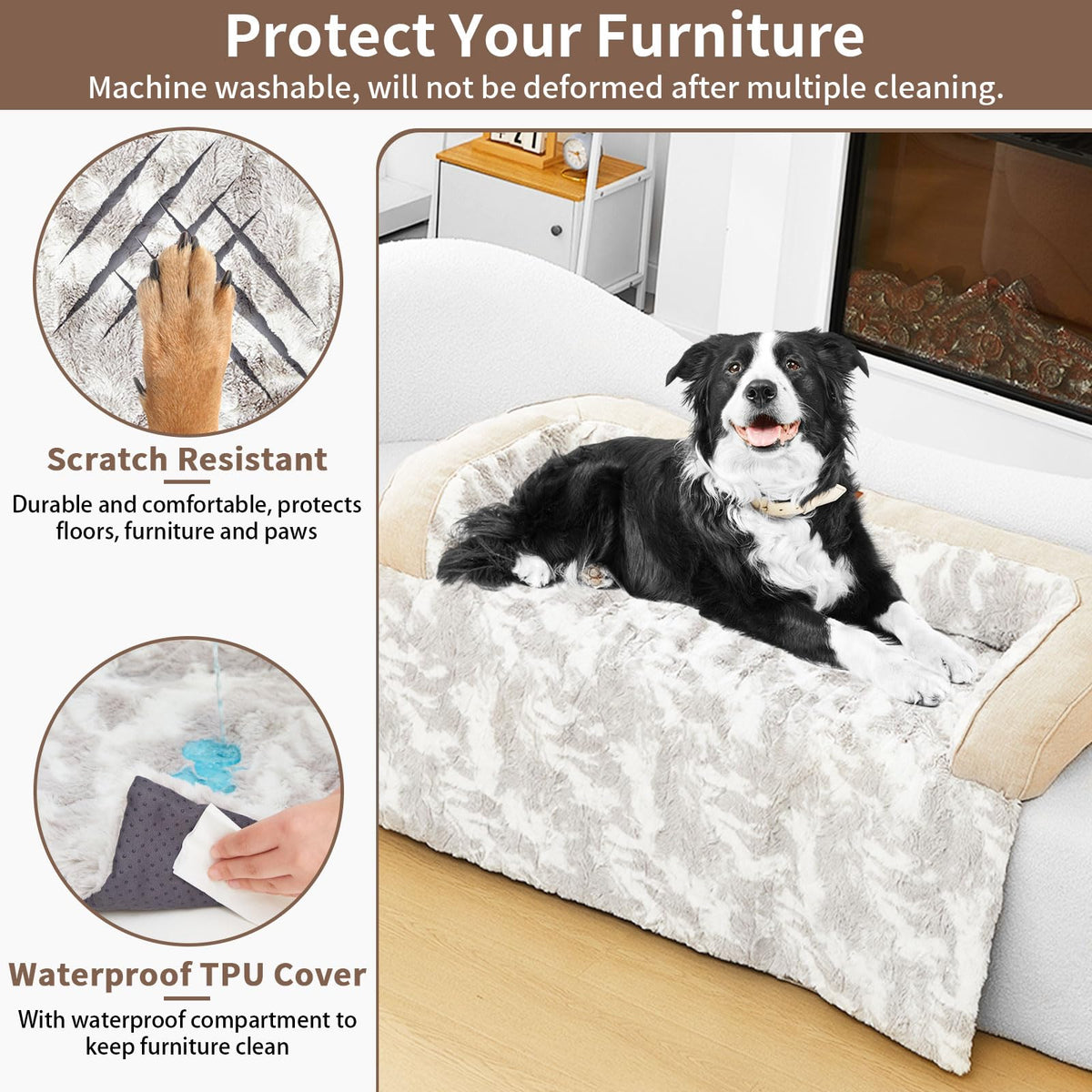Calming Dog Couch Bed Mat, 45X37 Inch Waterproof Fluffy Sofa Cover, Furniture Protector With Handle, Removable And Washable Pet Bed For Large Dogs And Cats (Beige)