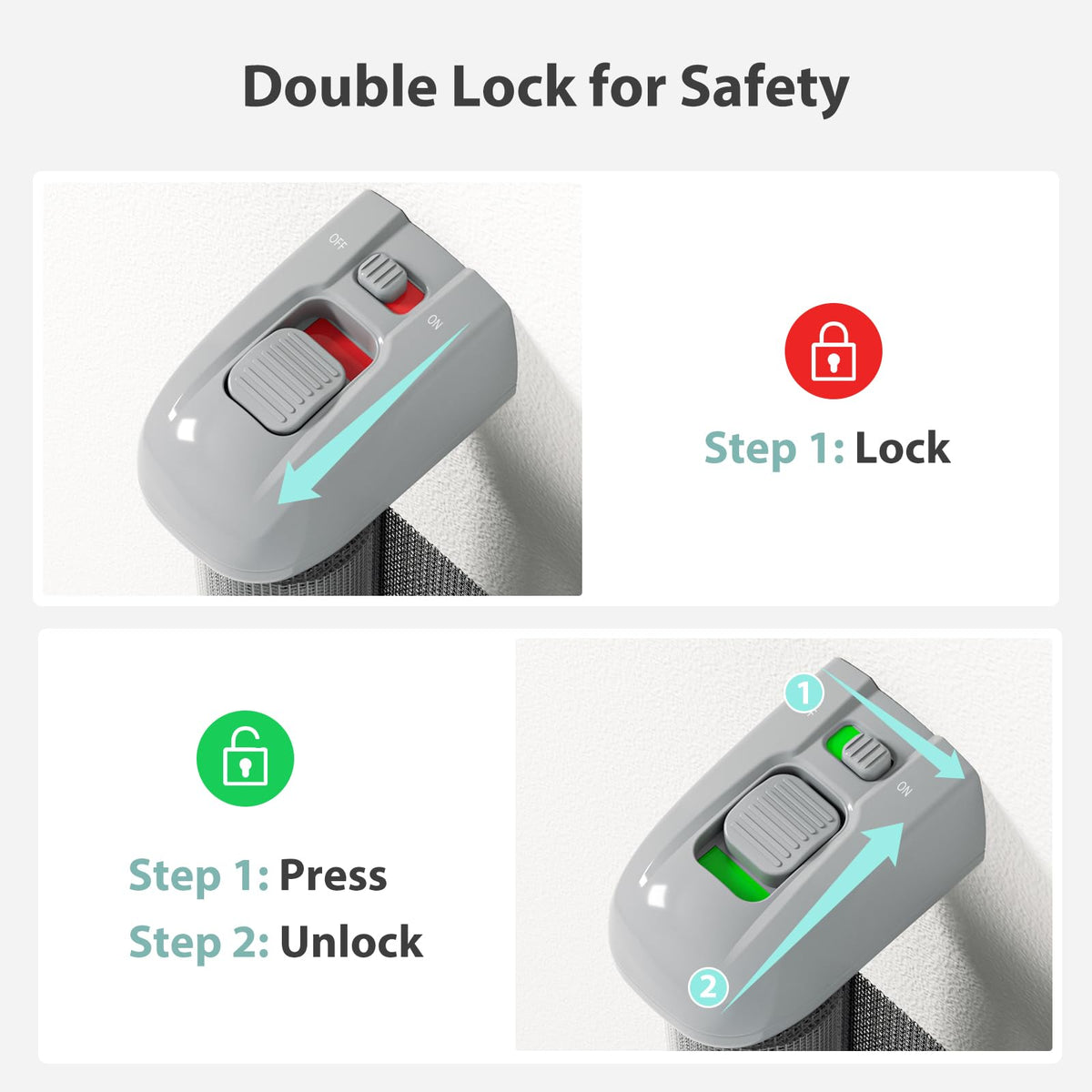 Hardware Mount Retractable Baby Gates for Stairs with Auto-Lock,33'' Tall,Extends up to 71'' Wide Mesh Double Lock Safety Baby Dog Pet Cat Gate for Doorways,Child Gate for Hallways Kitchen Indoor Grey