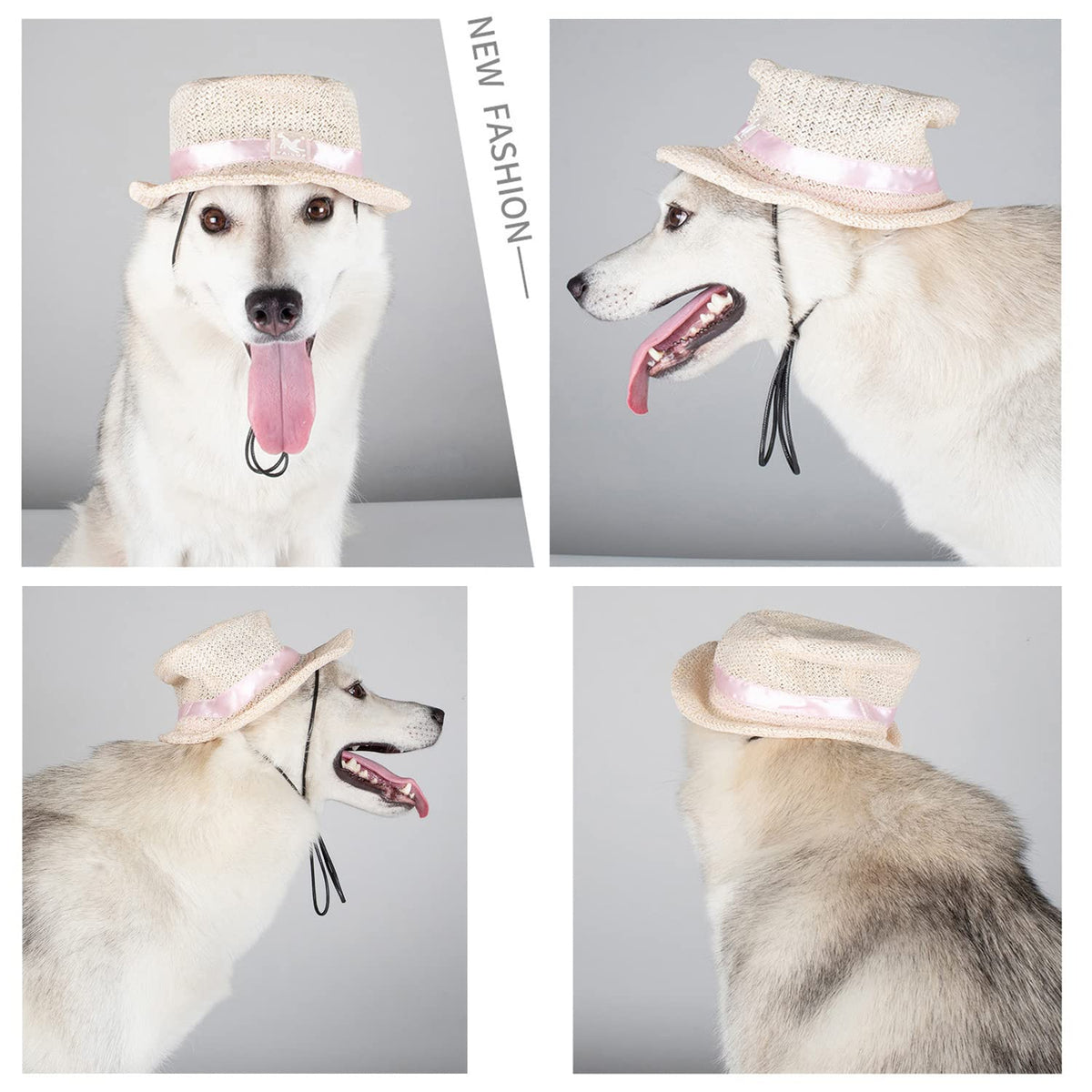 Harikaji Dog Top Hat,Pet Round Straw Hat,Dog Visor Mesh Sun Cap,Bucket Cap For Small Medium Large Dog Cats Rabbits(White,S)