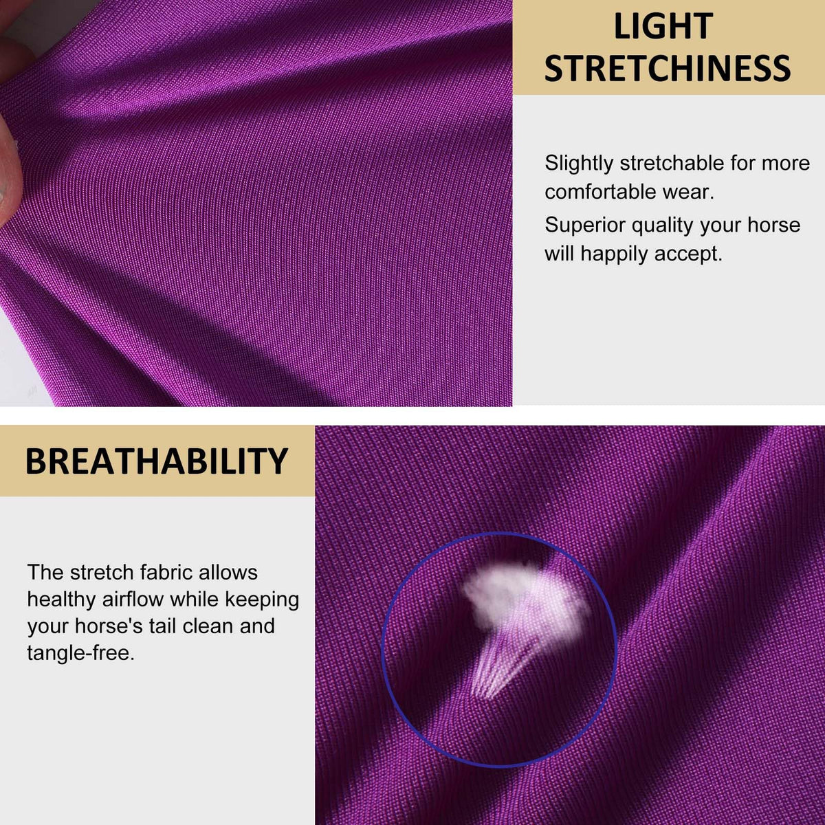 Horsetail bags are an easy and effective way to help keep your horse's tail protected from dirt, breakage, and rubbing. If you are tired of your horses tail hairs breaking due to mud, sun, and manure, now you can shield your horses tail from the ravages of all above with our handy tail bags! Designed to suit all tastes, the Harrison Howard Essential Tail Bag now has nearly a dozen of unique patterns, choose the right one to have your horses tail protected with style. It helps protect the horse's tail from dirt as well as smooth the tail hairs. The stretch fabric allows healthy airflow while keeping your horses tail clean, tangle-free, and lasts in all weather, a rather simple way to keep your horses tail in show-ready condition. Simply braid the hair, insert it into the bag, and tie it below the tailbone. Perfect for quick or overnight protection. Our bags have no touch tapes to pull on tail hairs and no fleece to absorb the hairs natural moisture. The tail bag is easy to use as it does not require any special tools. Theres no simpler way to keep your horses tail in show-ready condition! We have various colors and patterns of ponytail bags for you to choose. One size fits most. Measures 4'' wide and 22'' long (tail bag length).