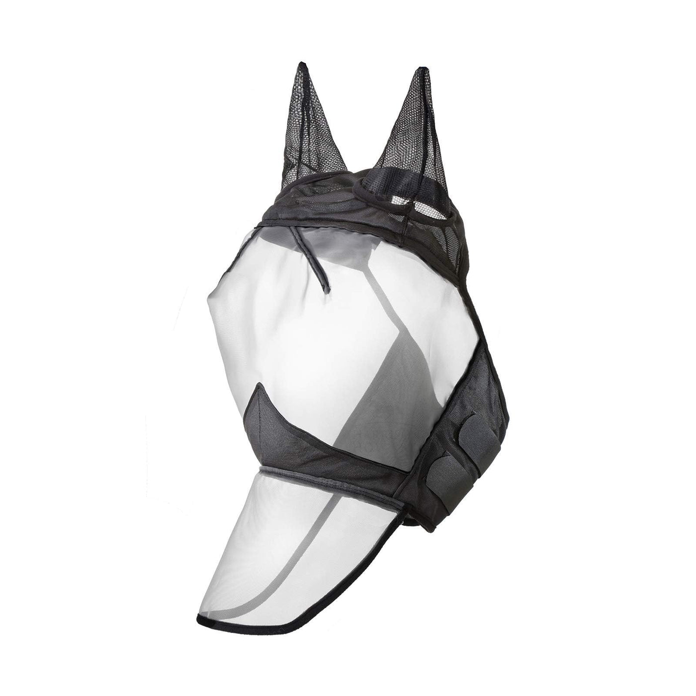 Harrison Howard CareMaster Horse Fly Mask Long Nose with Ears Full Face Black/Silver Retro Medium Cob