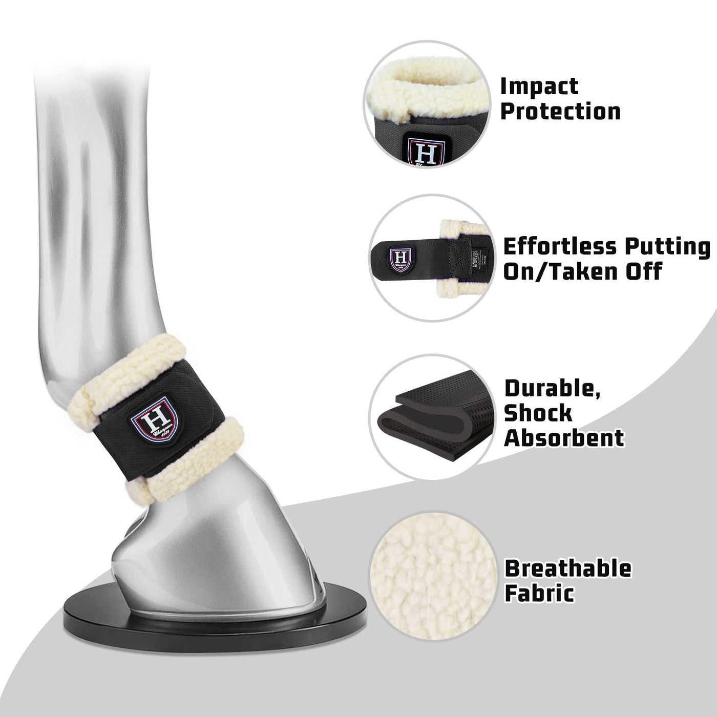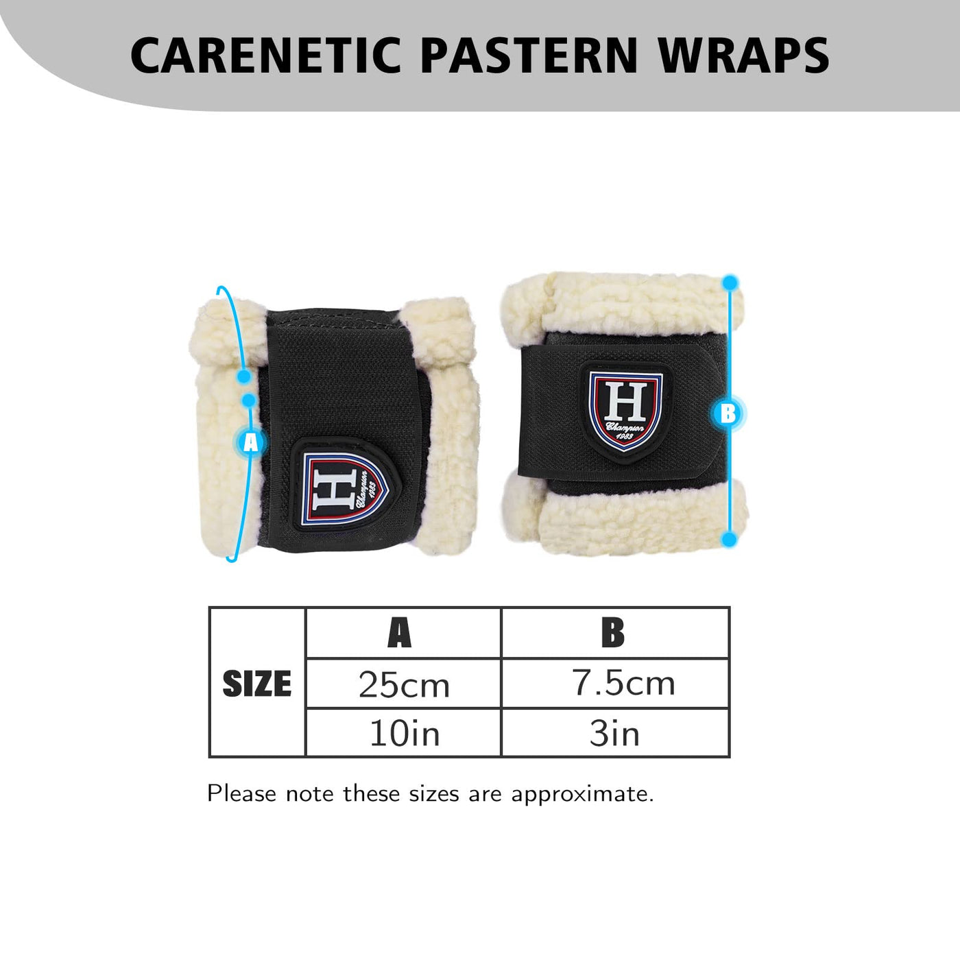 Harrison Howard Essential Premium Horse Pastern Wraps with Berber Fleece Lining Sold in Pairs Black