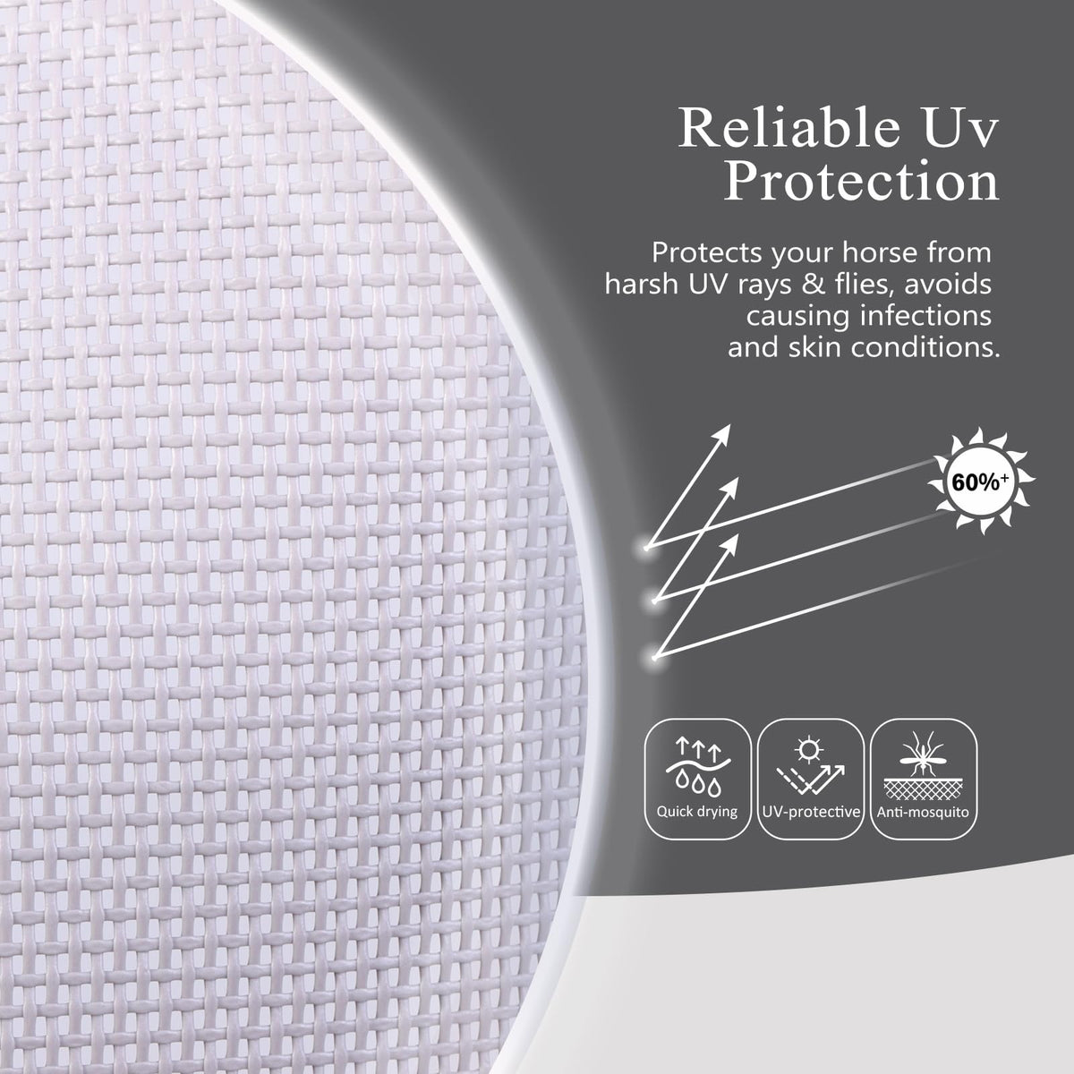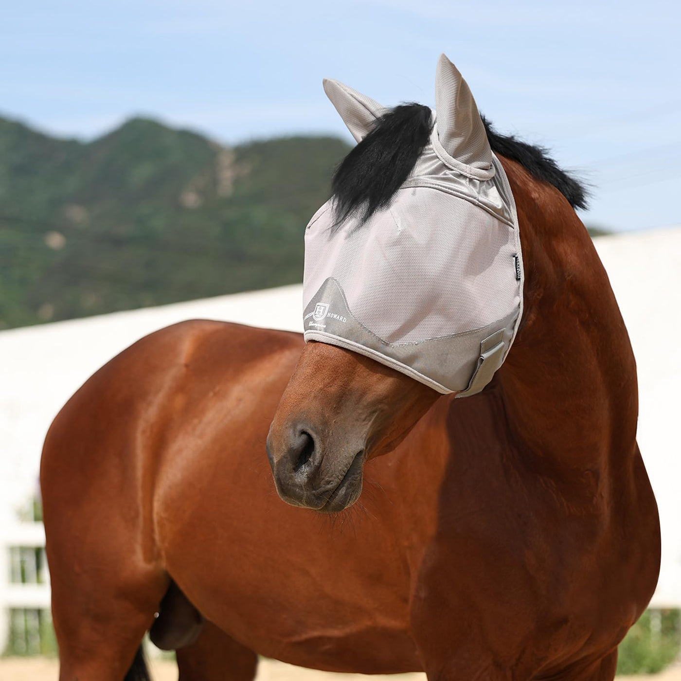 Just as a hat protects your head from the sun, the Harrison Howard Fly Mask covers and shields the delicate areas of your horses face prone to sunburn and reduces solar glare. This fly mask is engineered with a micro-weave panel structure that allows for a comfortable fit. The extremely durable, lightweight and fine-weave face cover offers your horse optimum visibility and a noticeable cooling effect during the hottest summer days. Soft fleece along the seams effectively minimizes rubbing, making sure that the fly mask is away from horses sensitive eyes and reduce gaps, meanwhile minimizing rubbing or harsh abrasion. A forelock hole designed on the top is beneficial for horses with a large forelock. With extra hair tucked under, the hair wont lay comfortably and flat on the head. With a forelock opening design, it is more likely to stay put. It also adds more security to help the mask stay in place, also offers another level of comfort for the horse. A secure and sturdy closure design under the jaw withstands the grueling demands of turnout. The touch tape adapts to the horse nicely, ensuring a snug fit. The Harrison Howard fly masks stay on, are easy for the horse to see out of, and are as protective as they are comfortable.