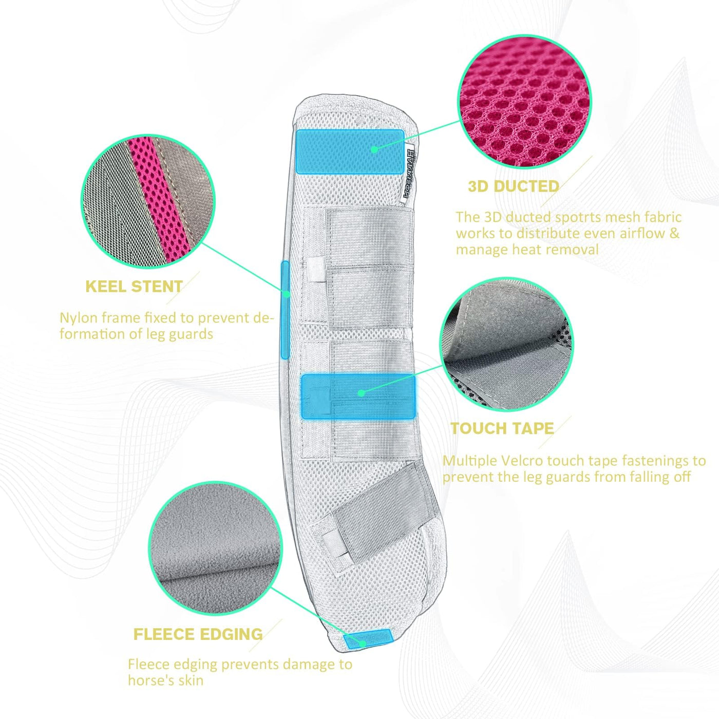 Harrison Howard Horse Fly Boots Leg Guards Fly Boots Protection Set of 4 Magenta Large Full Size