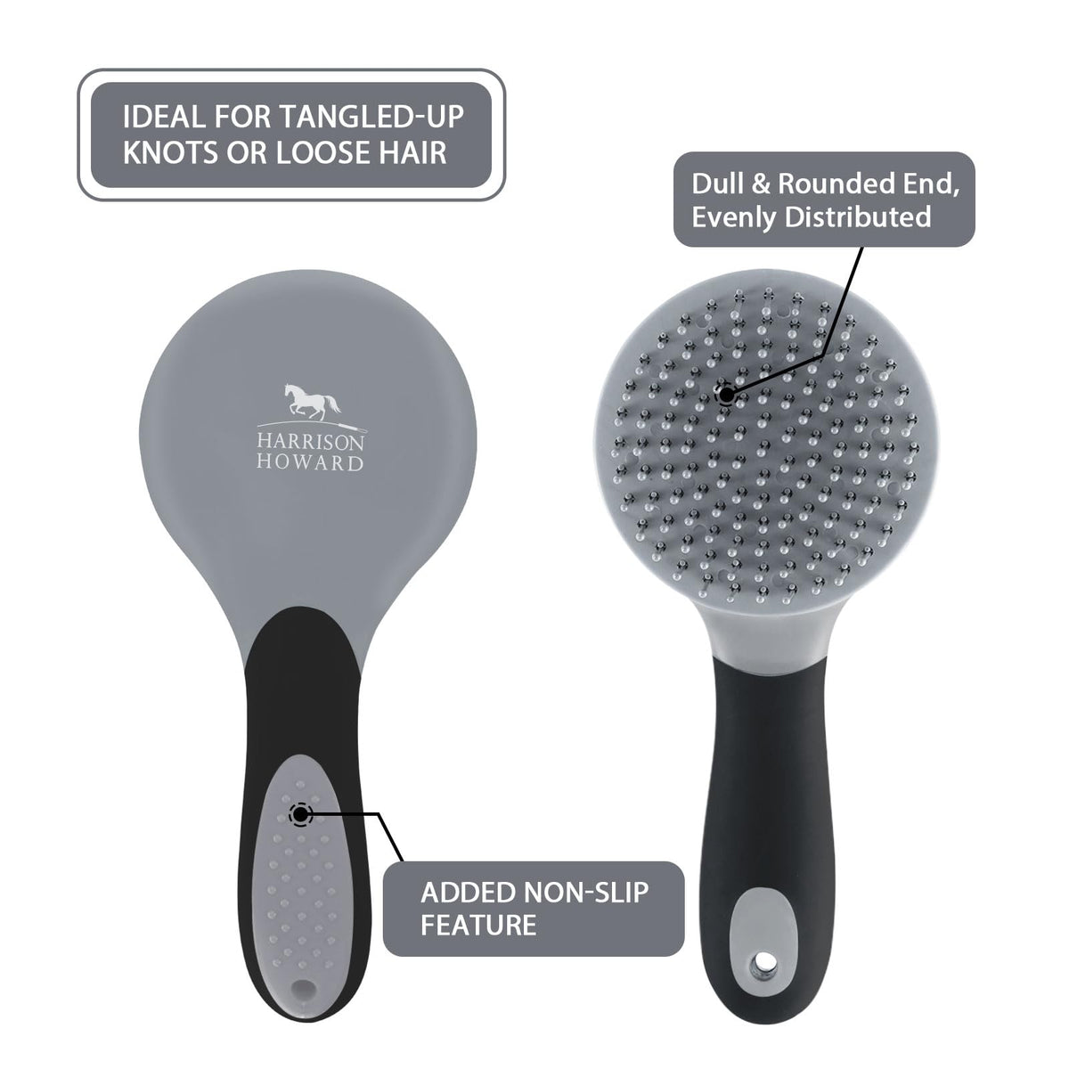 Harrison Howard Horse Mane And Tail Brush - Professional Grooming Brush, Equestrian Detangler, Non-Slip, Black