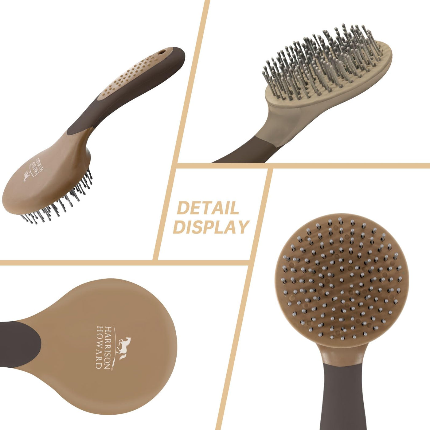 The Harrison Howard Premium Round Head Mane And Tail Comb Is An Essential Tool In Your Horse Accessory Kit. It Helps With The Removal Of Any Tangled-Up Knots Or Loose Hairs From Both The Horses Mane Area And Also Its Tail. The Comb Quickly Removes All Loose Hair, Dirt And Tangles, And Leaves The Coat Shiny, Smooth And Snuggly. All The Teeth On The Comb Head Are Evenly Distributed Across The Surface. They Provide For Soothing Combing Of The Horse Hair In All Directions. More Importantly, They All Have Dull, Rounded Ends, So That Its Completely Safe And Pleasant To Comb The Horse Without Irritating Him. Even The Most Sensitive Ones Will Find This Comb Quite User-Friendly. Another Advantage Is That The Comb Also Has A Massage Function To Promote Blood Circulation; All In All Very Beneficial To The Horses Well-Being. The Comb Handle Adopts A Humanized Design - A Non-Slip Arc Handle Makes Sure That It Can Be Held In Hand By The Handler Without Slipping. Additionally, It Features A Slightly Curved Angle At The Place Where The Thumb Rests, Further Ensuring A Firm Hold. It Is Very Convenient And Comfortable For The User To Operate. A Hanging Strip Is Added At The End Of The Handle So That The Comb Can Be Easily Hung Anywhere, Which Is Convenient For The Handler To Manage And Also Have Easy Access To The Comb.