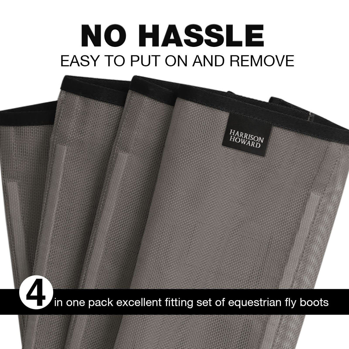 Harrison Howard Loose Fitting Fly Boots Uv-Protective Extra Tough Mesh Ventilated Four Fasteners Stay-On Design Protect Horse Le