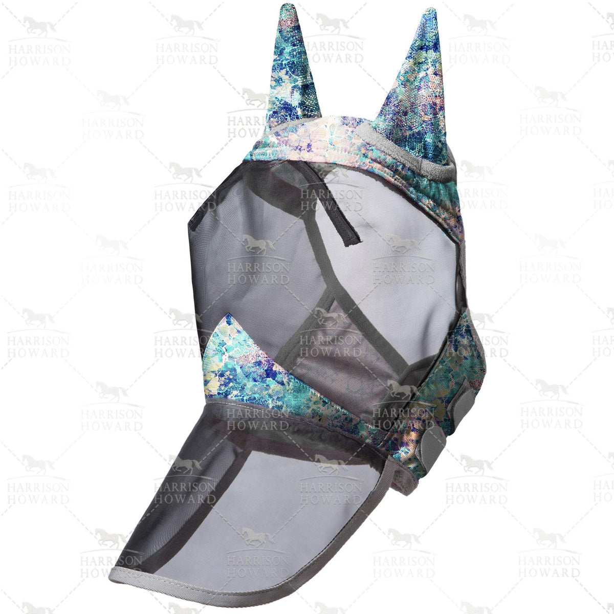 Harrison Howard LumiVista Horse Fly Mask Long Nose with Ears UV Protection for Horse Pastel Mix M Cob