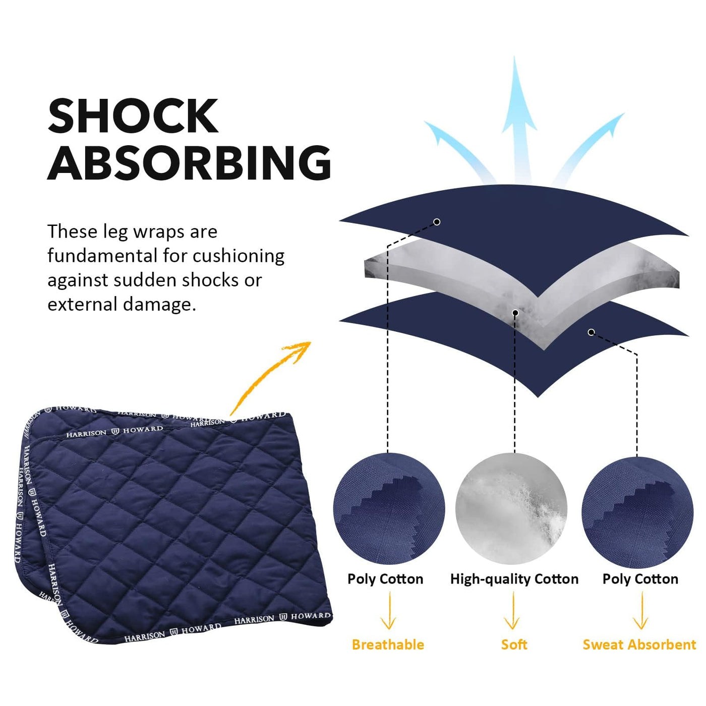 Harrison Howard Medicine-Retaining Shock-Absorbing Pressure Sores Prevention Quilted Leg Wraps For Horse Set Of 4-Navy M