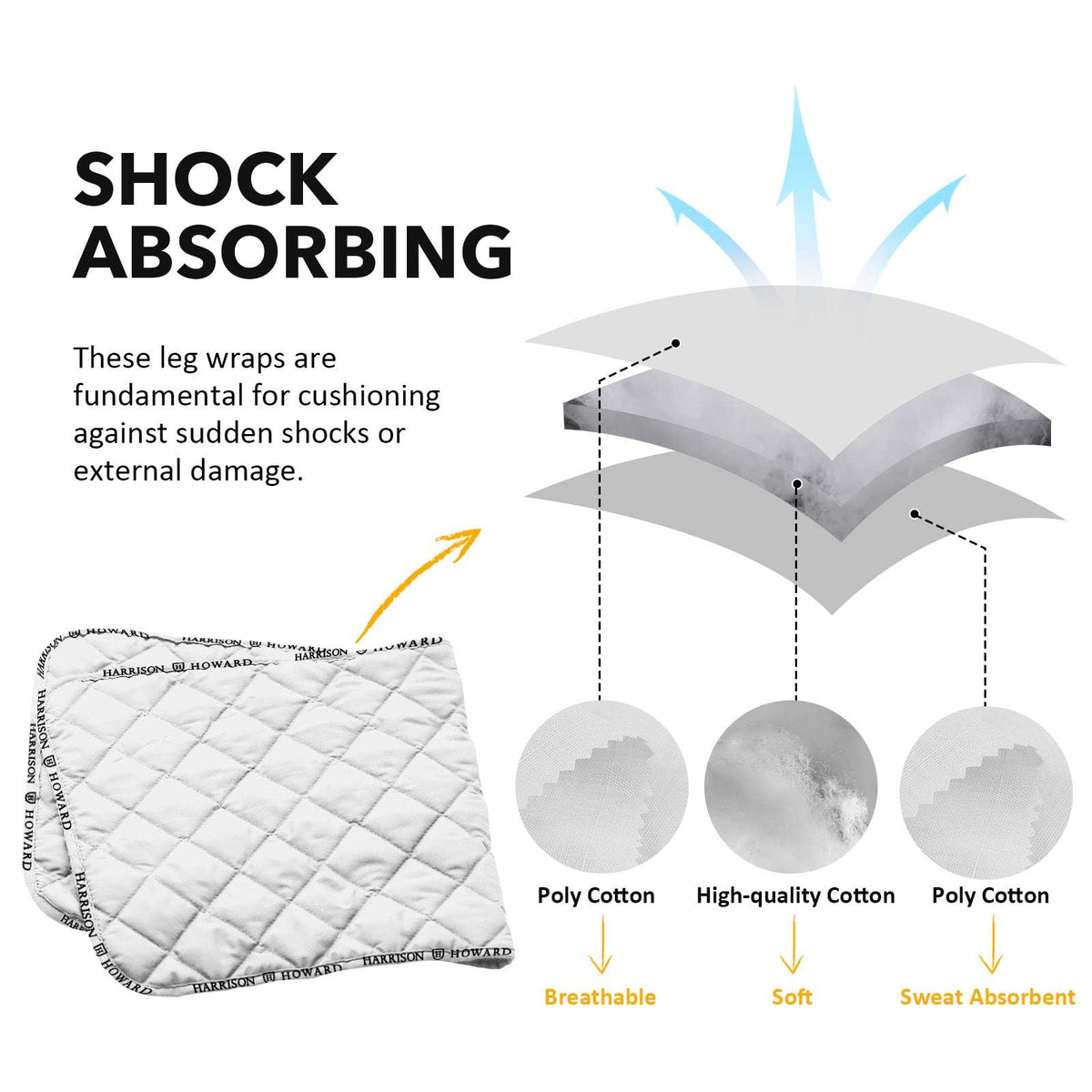 Harrison Howard Medicine-Retaining Shock-Absorbing Pressure Sores Prevention Quilted Leg Wraps For Horse Set Of 4-White M