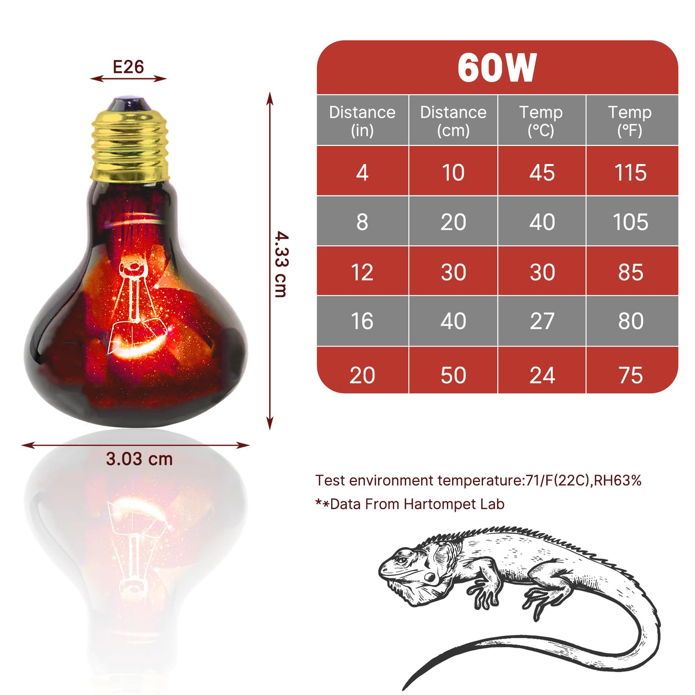 HARTOMPET 60W Infrared Red Heat Lamp for Reptiles, Basking Spot Bulb for Pet Lizards, Bearded Dragons, Chameleons & Snakes, Red