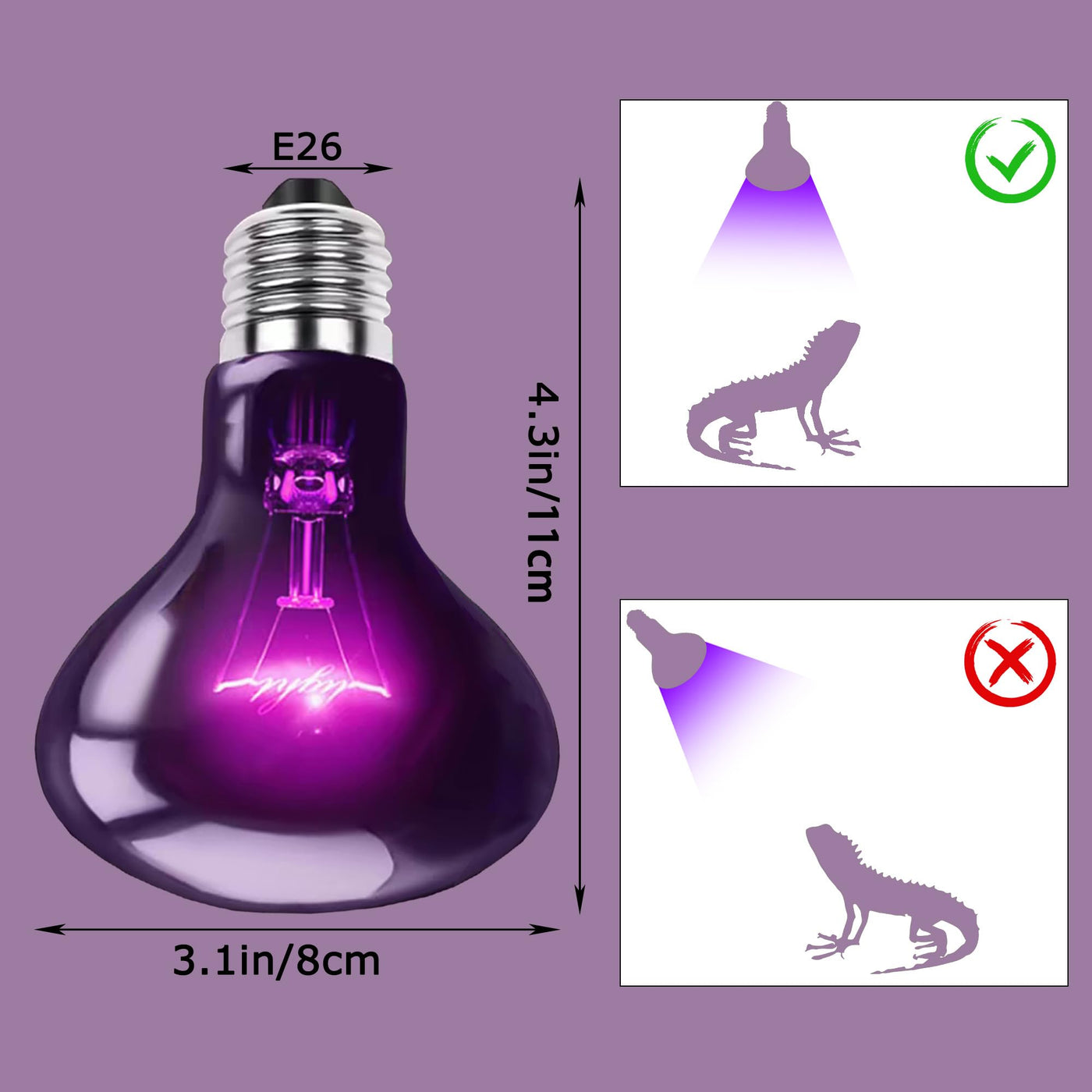 HARTOMPET 60W Reptile Night Light Bulb - Simulated Moonlight & Purple Heat Lamp for Reptiles and Amphibians - Perfect UVA Basking Light for Bearded Dragons Lizards and Aquatic Tanks