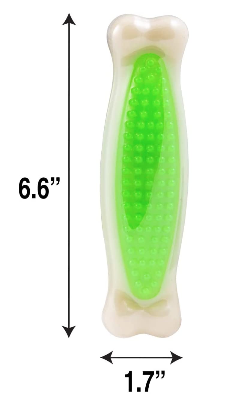 Q: Can I choose the color of the Tuff Bone when ordering?A: The Tuff Bone comes in various colors, including green, orange, and pink. However, the product color is chosen at random during shipment.