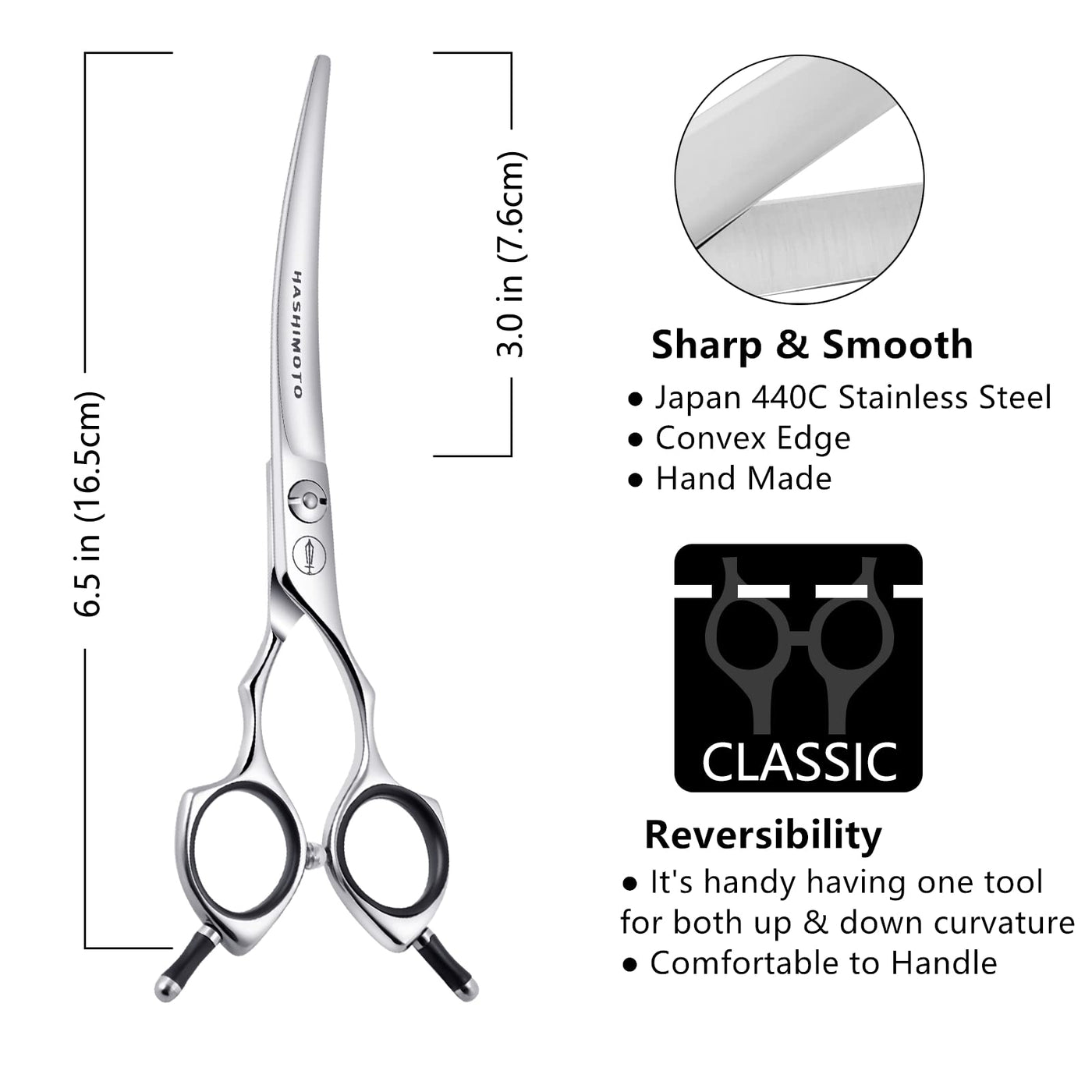 Hashimoto Dog Grooming Scissors, Curved Scissors For Dog Grooming, 6.5 Inch, 30 Degree Of Curved Blade,Light Weight, Pet Shears For Trimming Face And Paws.