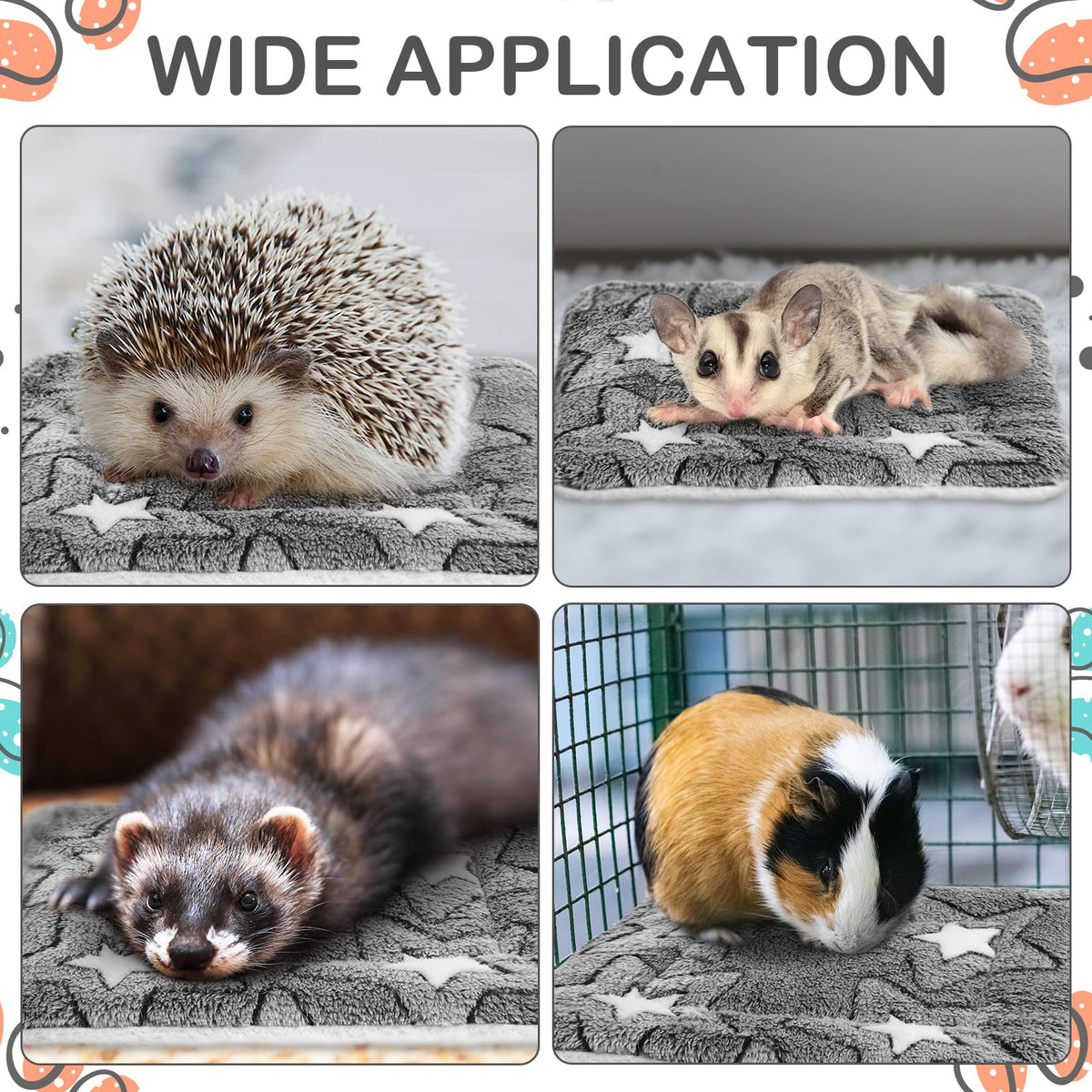 Haull 4 Pcs Waterproof Guinea Pig Bedding Winter Guinea Pig Bed Plush Cage Liners Soft Dog Cat Mat Reversible Winter Cozy Animal