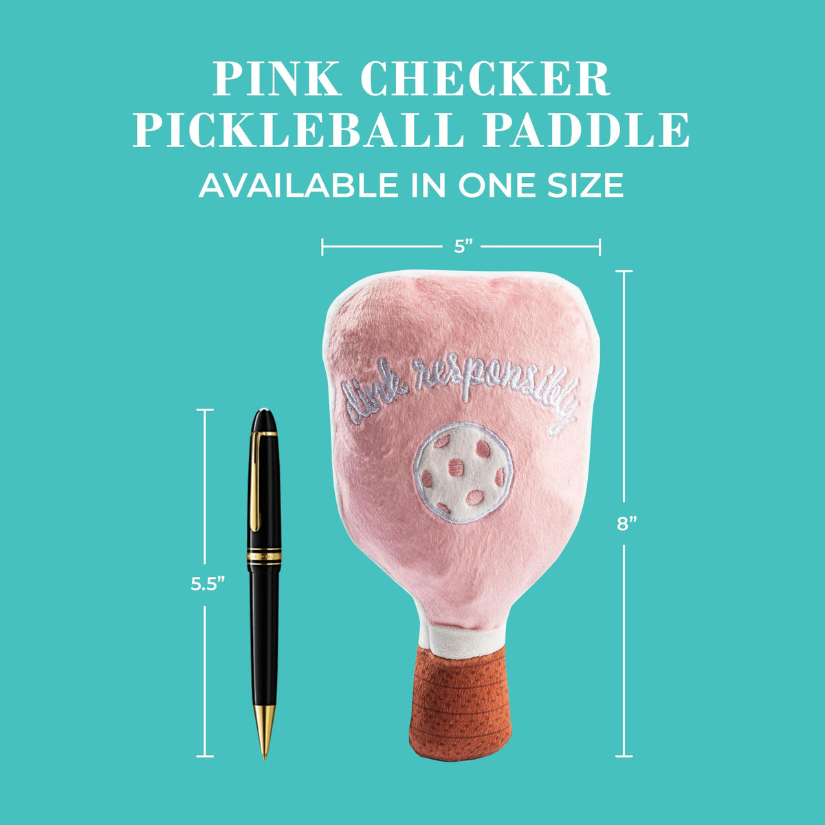 Haute Diggity Dog Pink Checker Pickleball Paddle, Plush Trendy Sporty Dog Toys With Interactive Squeaker, Stimulating Pet Enrich