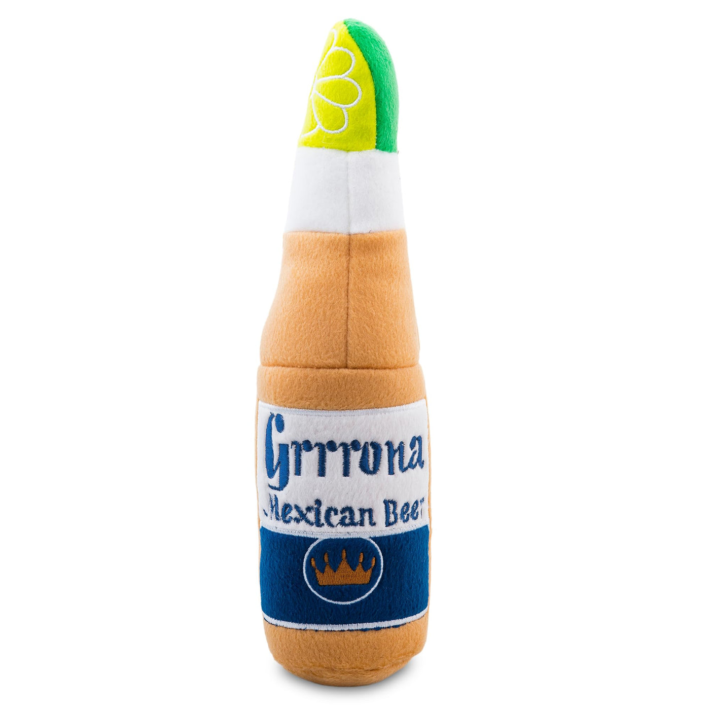 Let your dog find his beach with the Grrrona Mexican Beer Plush Toy . When life gives your dog limes take the limes away and give him this dog safe plush toy instead This toy is styled to look like a bottle of Corona beer with a lime protruding from the b.