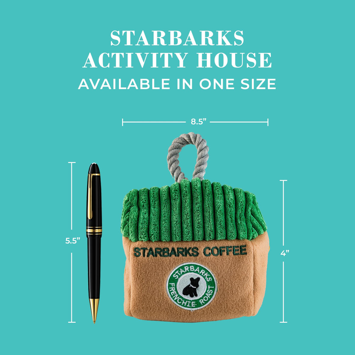 The Starbarks Collection is where puppuccinos and playtime go paw in paw! Get ready for a caffeinated canine adventure with our bark-tastic parody plush toys inspired by your favorite caf indulgences. Its a tail-wagging extravaganza as your furry friend sinks their teeth into the Frenchie Roast, Sweet pup Cold Brew, Frapawccino, Pawberry Ruffresher, or Muttchiato. These soft, cuddly, machine-washable toys with exquisitely embroidered details will have your pup barking for more as they enjoy their pup-fee delights. Watch their eyes light up with joy as they discover the hidden squeaker inside. Its a blend of caffeinated fun and tail-wagging happiness, brewed to perfection just for your furry friend. In the Starbarks world, your pup is the ultimate connoisseur, so capture those priceless moments and let their playtime adventures perk up your social media feed one adorable photo at a time. The Starbarks Collection is where coffee and canines collide in a blend of pawsitivity & puppuccino perfection.