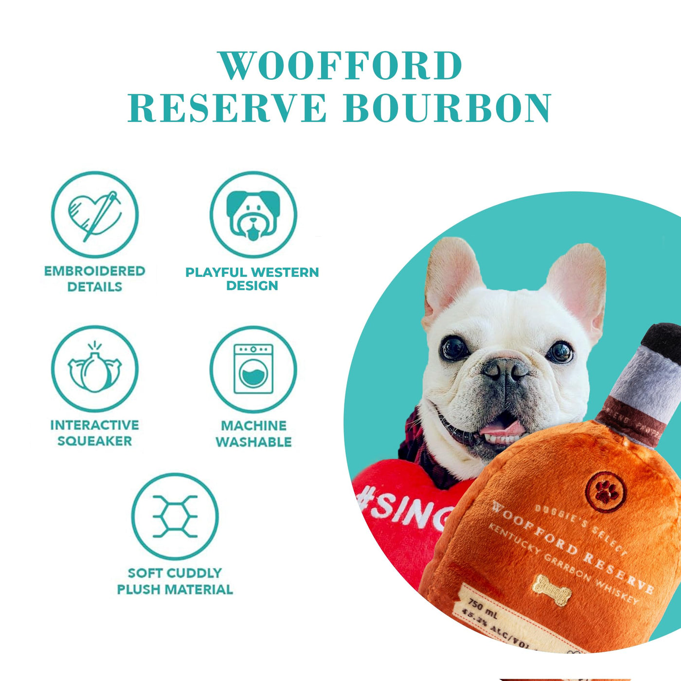 Haute Diggity Dog Woofford Reserve Bourbon Bottle Parody Plush Dog Toy For Medium & Large Dogs, Drink-Inspired Stuffed Dog Toys