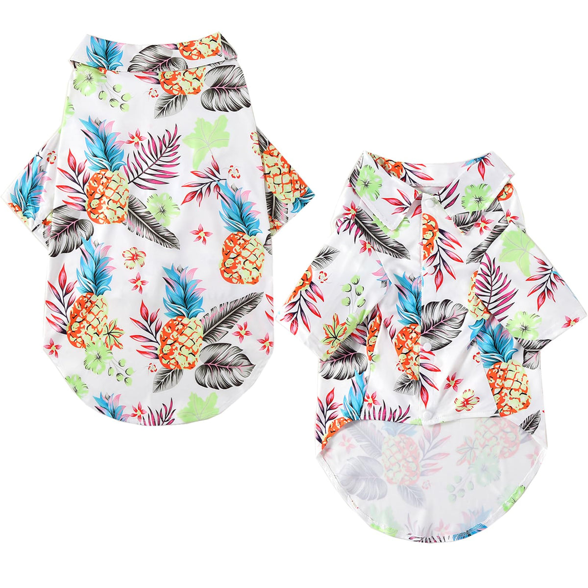 Dog Hawaii Shirt White Fruits Prints Polo T-Shirts Breathable Cool Beach Style Summer Dog Clothes For Large Dog Boys And Girls Shirt (2X-Large, Fruits)