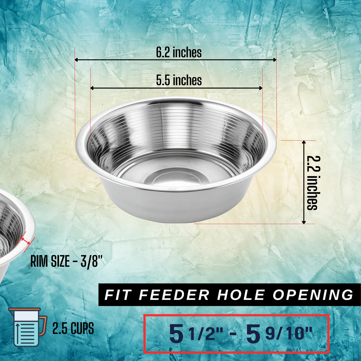 Hb 2.5 Cups Stainless Steel Dog And Cat Bowls (2 Pack) Extra Replacement Bowl 6.2'' Diameter, 2.2'' Height For Raised Feeder Wit