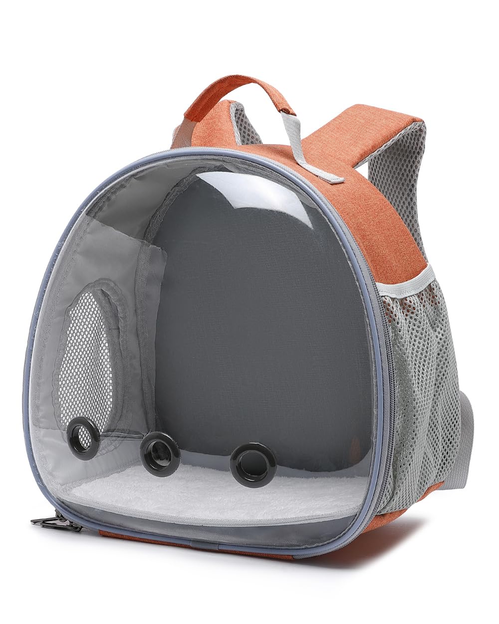 Hcupet Small Animal Carrier Backpack Space Capsule Bubble Window Carrier Backpack For Lizard Guinea Pig (Orange)