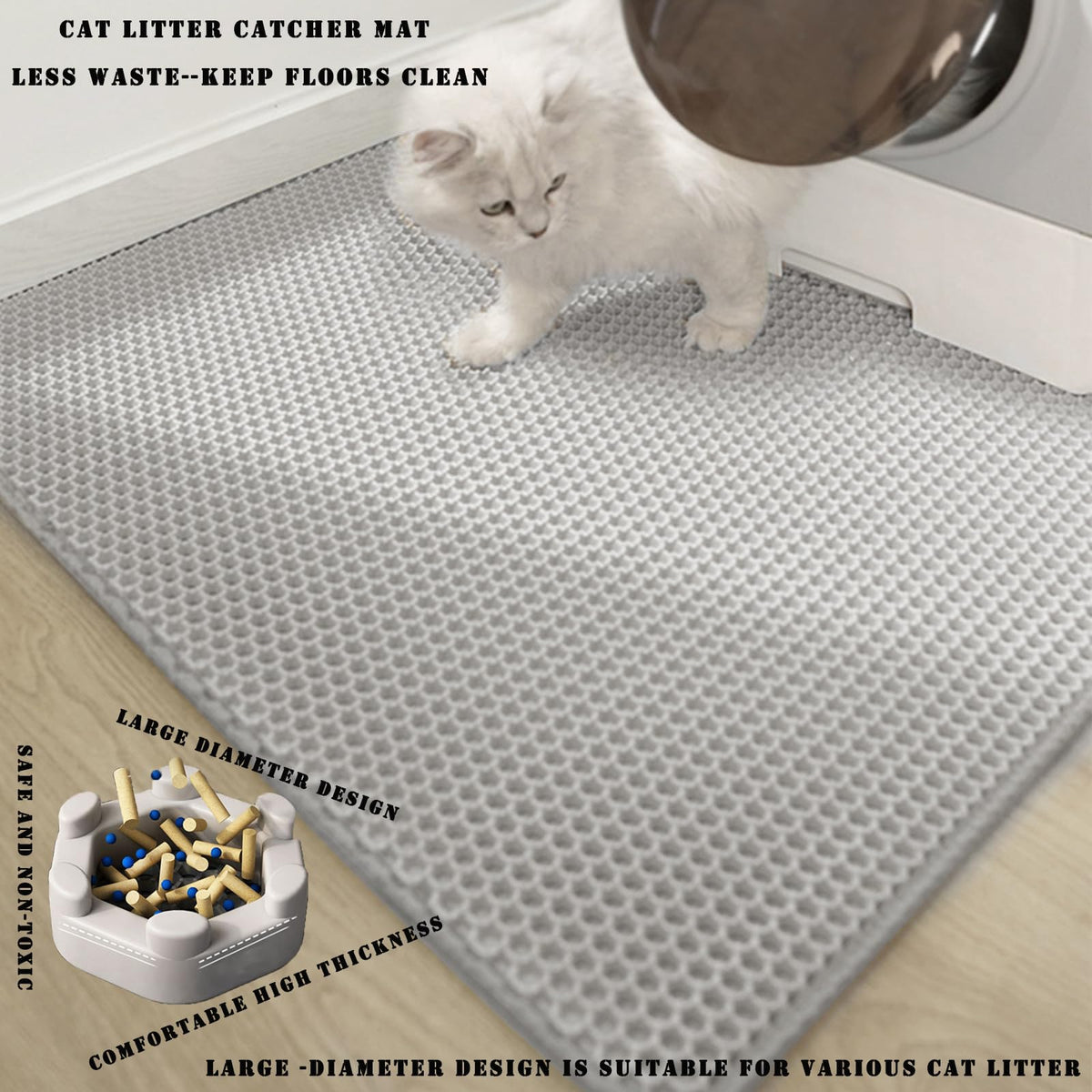 Hcy&Wld Cat Litter Mat, 45X26/35X24/30X22/24X18 Inch Double Layer Cat Litter Box Mat, Eva Non-Slip, Waterproof Urine Proof Cat L