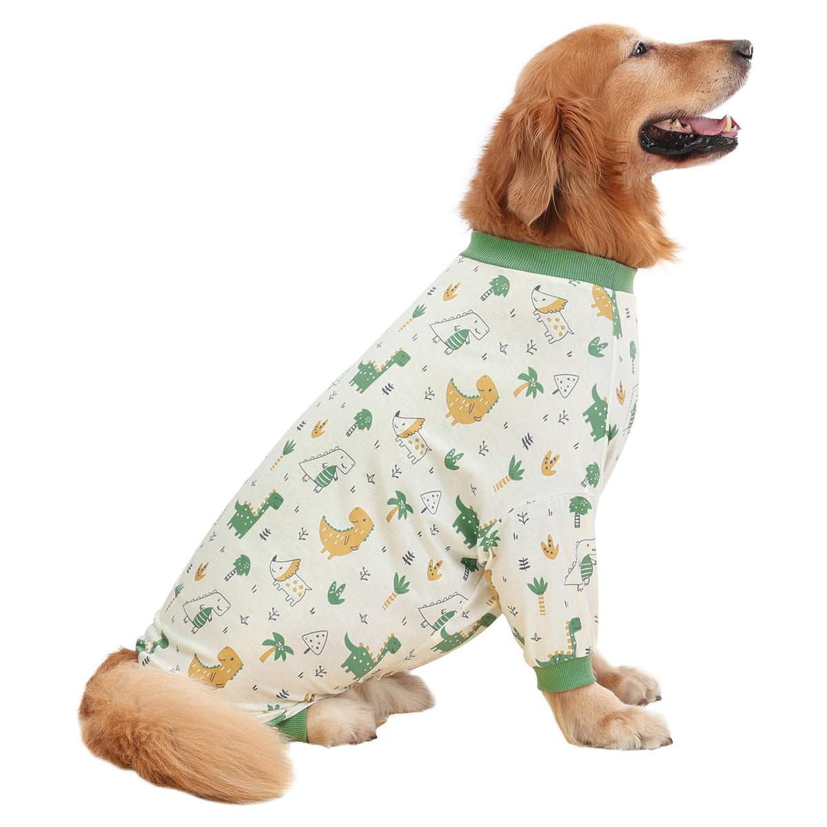 HDE Dog Pajamas One Piece Jumpsuit Lightweight Dog PJs Shirt for M-3XL Dogs Forest Dinos - 2XL
