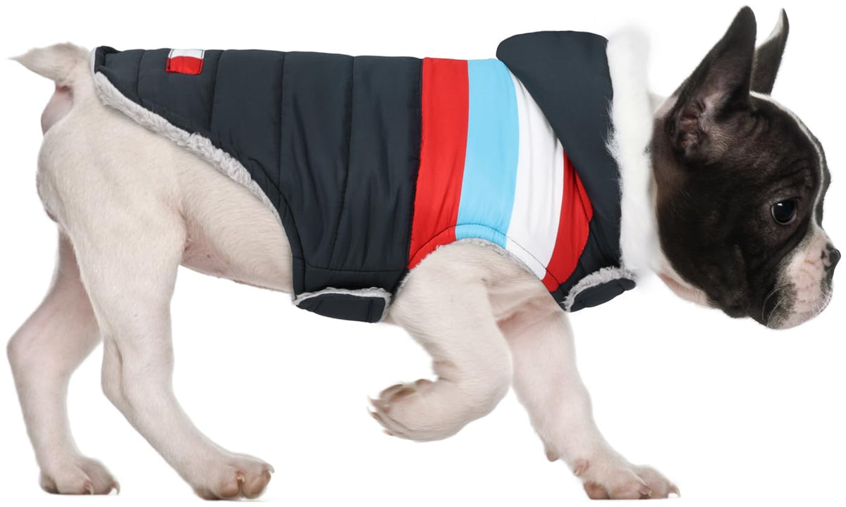 Want To Enjoy The Snow With Your Furry Pet Outside?Worry No More! The Hde Dog Puffer Jacket Extra Warm Dog Vest With Waterproof Outer Layer Protects Your Furry Pet From Cold Weather And Freezing Wind Outside. Keep Your Dog Stylish And Trendy With A Unique Quilted Chevron Designed Winter Coat With Faux Fur Accents.Fleece Lined Puffer Jacket Lets Your Dog Play In The Snow Without The Worry Of Them Being In Cold Weather! Faux Fur Trim Hood Keeps Their Ears And Head Warm And Shields The Wind, Rain And Snow While The Leash Hole Is Great For When You Need To Walk Your Dog In Cold Weather Or Rain.Our Dog Puffer Jacket Is Breathable And Lightweight While Keeping Your Furry Pet Extra Warm And Comfortable! Water Resistant Outer Layer Is Great For Keeping Your Dog Dry. Simply Use The Neck &Amp; Belly Strap Hook And Loop Fasteners For A Snug Fit. Sizes Are Available In S, M, L, Xl, Xxl.Available In Color Patriotic, Size M.
