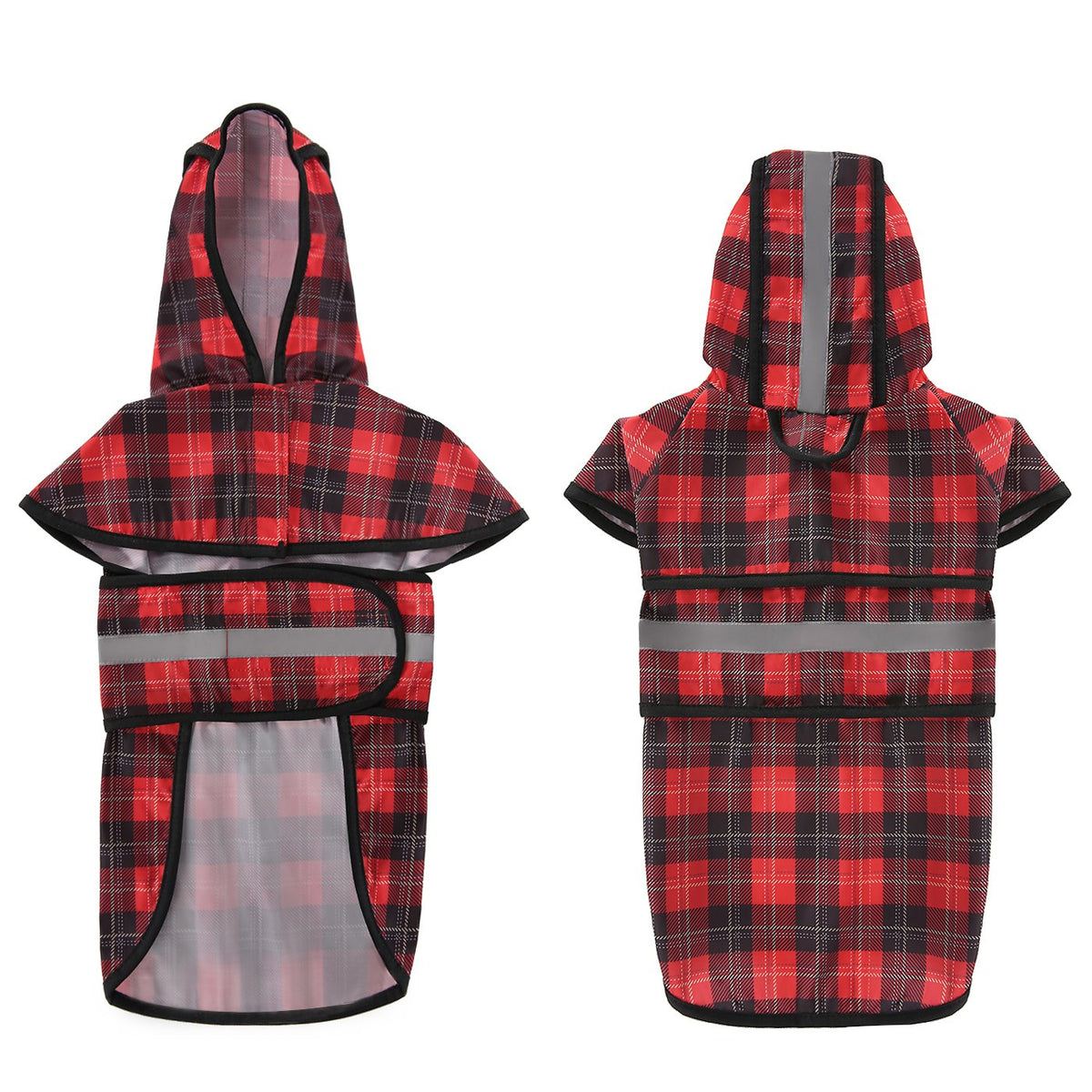 Hde Dog Raincoat Hooded Slicker Poncho For Small To X-Large Dogs And Puppies Plaid - L