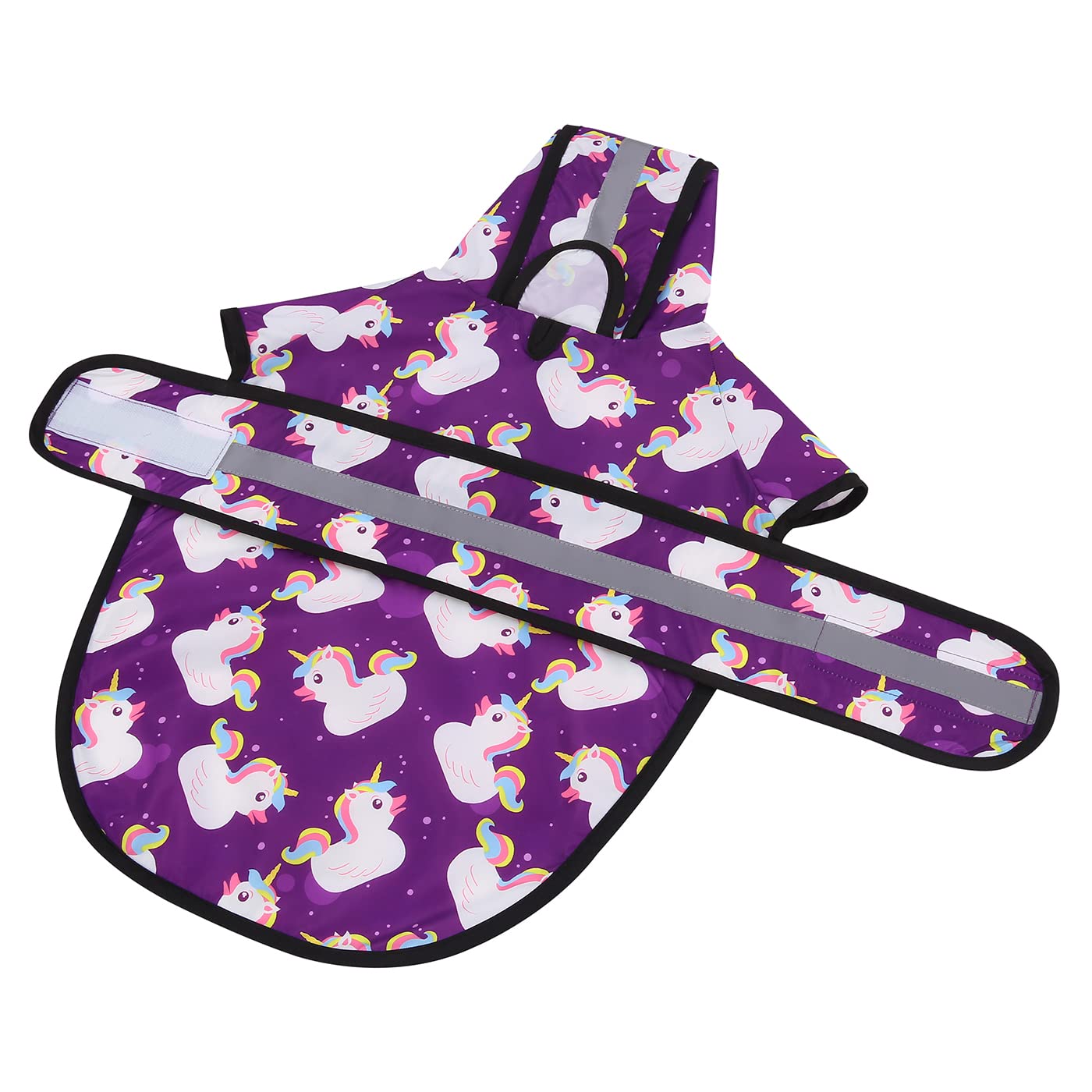 Hde Dog Raincoat Hooded Slicker Poncho For Small To X-Large Dogs And Puppies Purple Unicorn Ducks - S