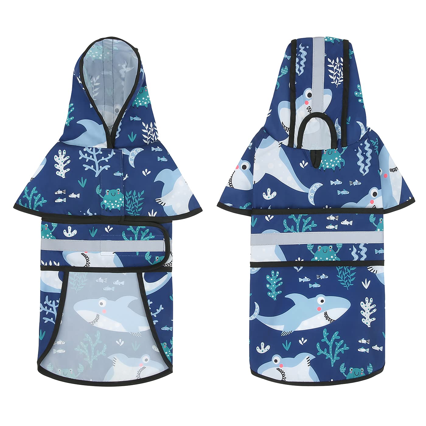 Hde Dog Raincoat Hooded Slicker Poncho For Small To X-Large Dogs And Puppies Sharks - L