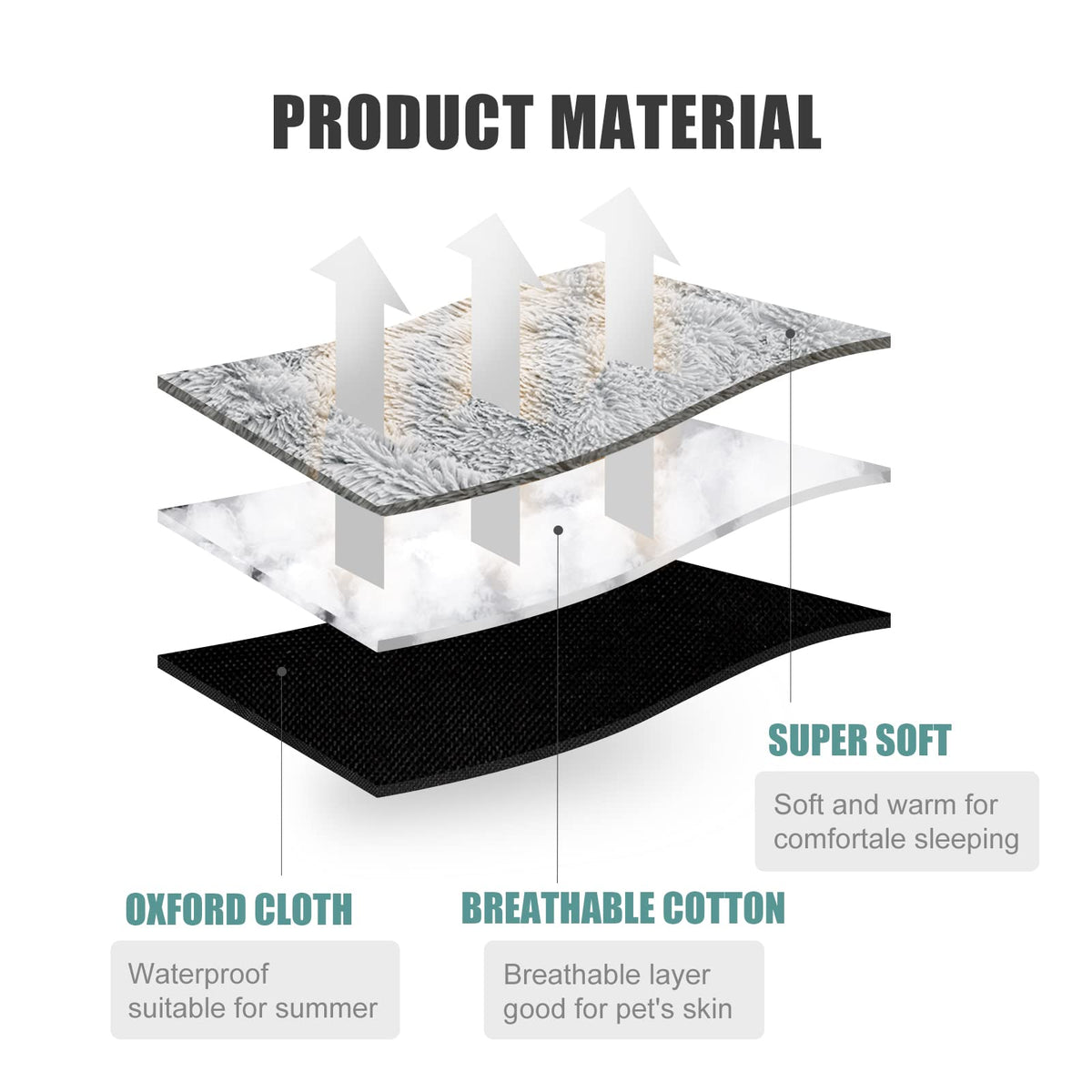 Q: What materials are used in the construction of the cat bed?A: The cat bed is made from high-quality plush fabric that is soft and comfortable. The bottom is constructed from breathable oxford fabric, which is also waterproof and easy to clean.