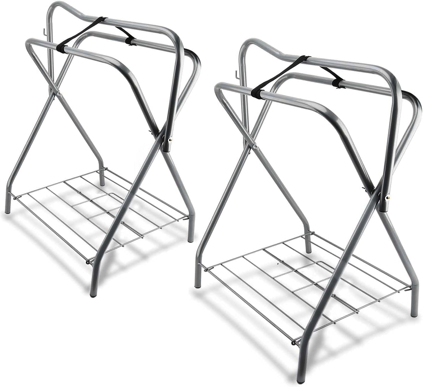 Hdyegy 2 Pack Portable Folding Horse Saddle Stand For English & Western Saddles, 28' L X 19' W X 37.5' H, Silver