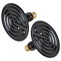WARNING:1.Surface temperature is too high, do not directly touch during use.2.To avoid scald, please wait at least 1hour of cool down after turning it off.3.Please adjust the distance between the lamp and the pets, at least more than 35cm.4.To avoid risk of fire, please use in a well-ventilated area and away from combustible or explosive materials.5.Please use one light or socket that exceeds the rated power of this heat bulb.Specifications:Socket: E26Voltage: AC 110V-120VWatts: 250WColor: BlackDiameter of heating surface: 140 mmHeight: 110 mmPackage Includes: 2-pack 250W ceramic heat bulbSuper long lifespain: 20,000 hours