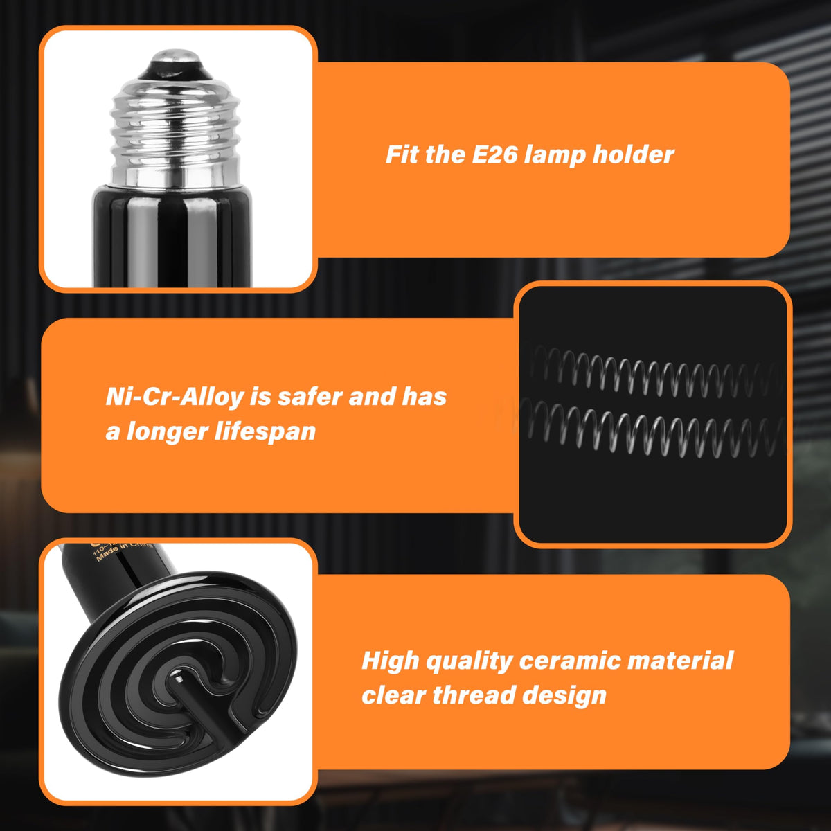 HealSmart Reptile Heat Lamp 75W 2-Pack Ceramic Heat Emitter, No Light Emitting Heat Bulbs for Amphibian Pet Brooder Coop Incubat