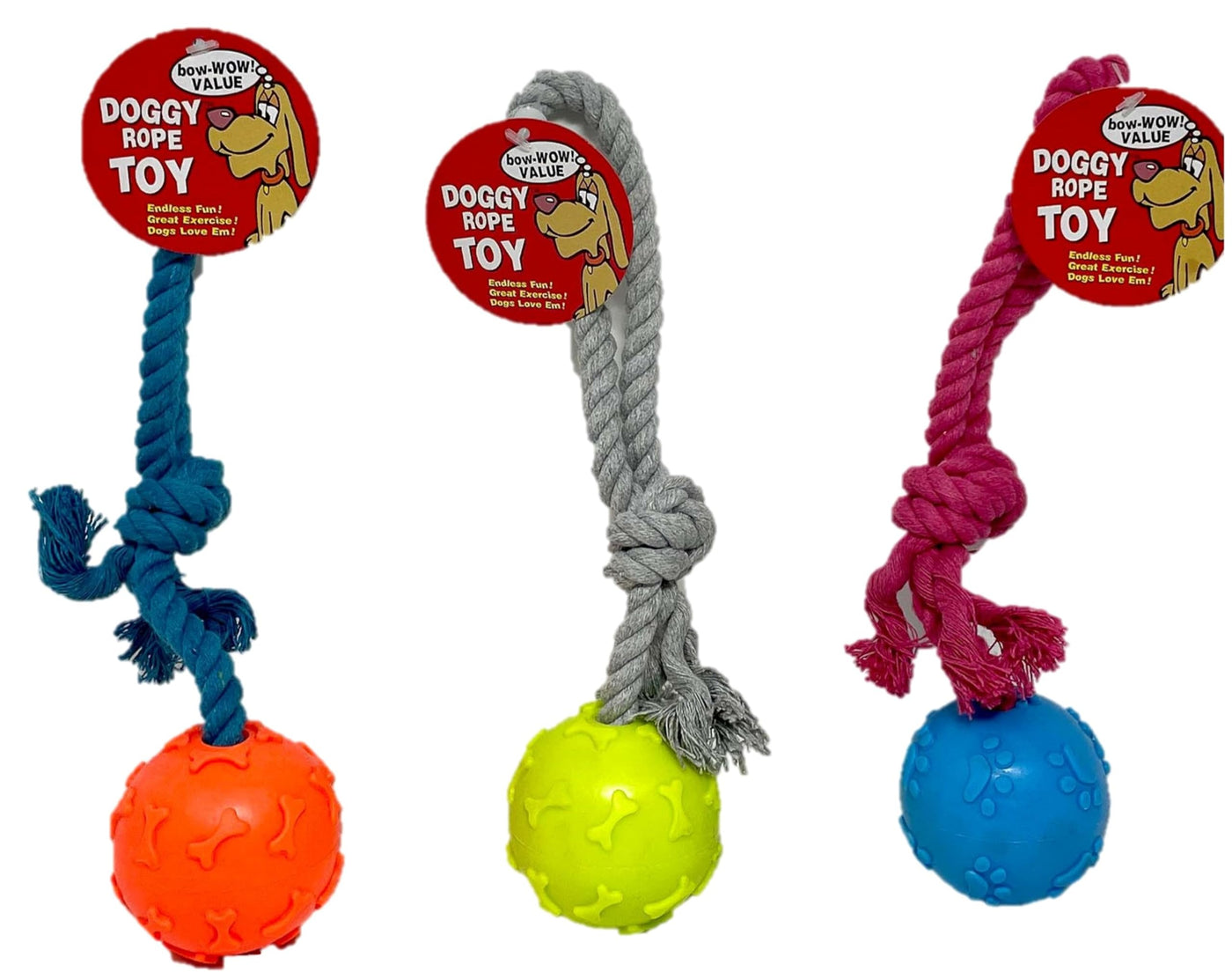 This Durable Tough Rope Is Designed For Creative Interactive Play. It Features Bright Colors And Sturdy Knots To Ensure The Dog Toy Is Appealing And Tough Enough For Play! Perfect For Tug Of War! The Ball Attached To The Rope Allows For More Interesting Chewing Textures So Your Dog Can Get More Enjoyment Out Of Playtime. Pets Require Engaging Toys To Keep Them Happy And Fulfilled, Which This Rope Excells At. Included Is (2) Rope Chew Toys. Color Varies.