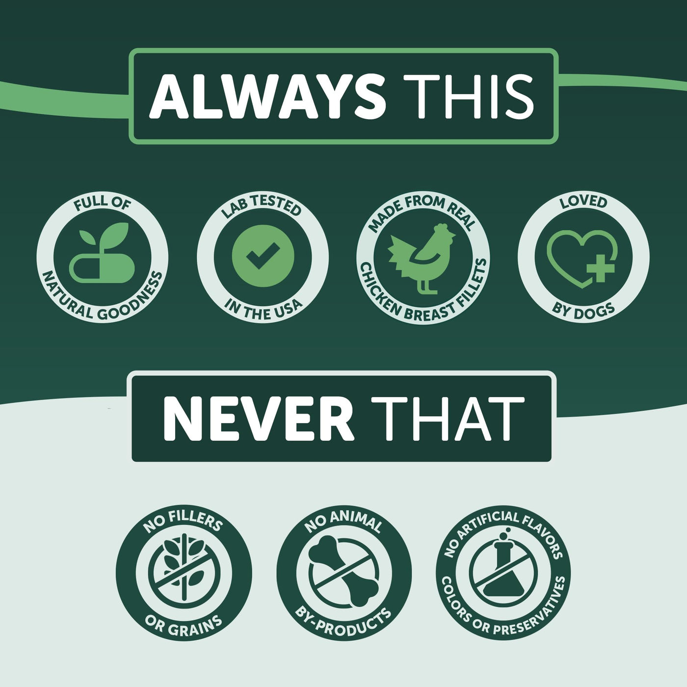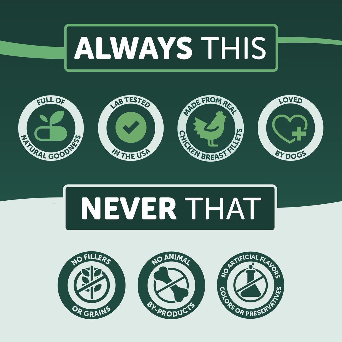 CHICKEN DOG TREATS - Made with savory, premium chicken breast, Healthfuls Chicken Jerky Tenders are packed with nutritious goodness and a natural flavor your pup will love. | NUTRITIOUS - Premium chicken breast fillets are high in protein and low in fat, with amino acids to help build and maintain muscle tone. | WHOLESOME INGREDIENTS - This healthy, grain-free jerky is made without artificial flavors, colors, preservatives, or fillers. | FLAVORFUL - Packed with nutritious goodness and natural chicken flavor, your dog will love the aroma, texture, and taste. These tenders can easily be broken into smaller pieces for a great low-fat training reward, making them a perfect treat for dogs of all ages, breeds, and sizes. | USA LAB TESTED - Your four-legged furry friend deserves the best! These tasty treats are lab-tested in the USA to ensure quality and safety.