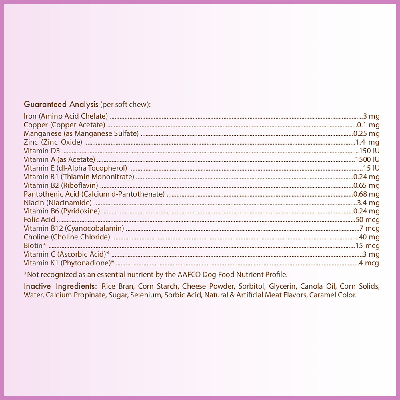 A daily nutritional supplement developed with a synergistic blend of vitamins, minerals and antioxidants in a great tasting soft chew that dogs love! Healthy Breeds Multi-Vitamin Soft Chews are recommended for dogs of all breeds, sizes, ages and activity levels. They are also beneficial for breeding dogs, including pregnant and lactating females and stud dogs.
