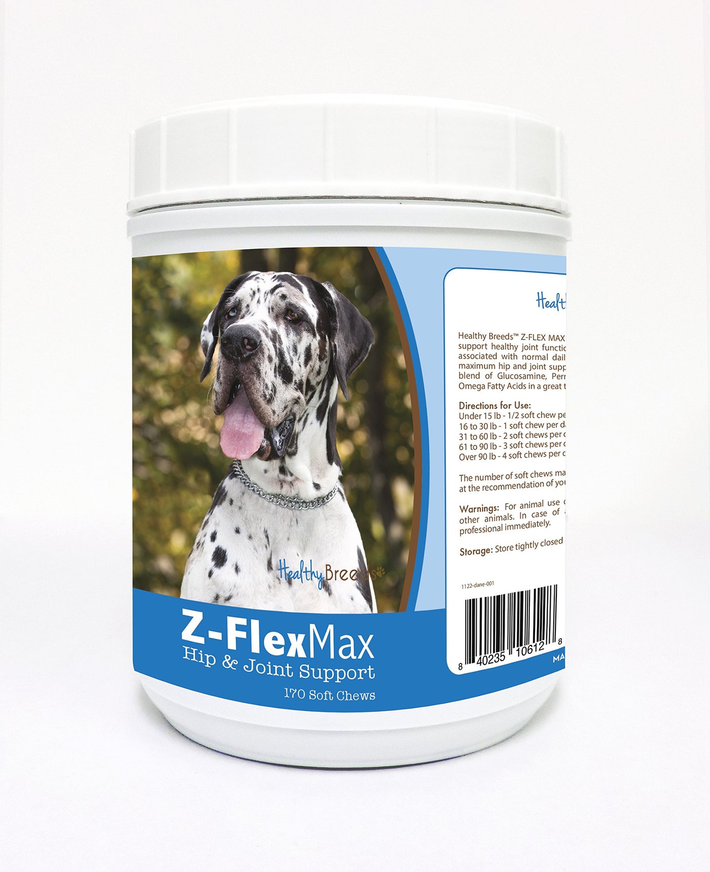 Healthy Breeds Z-Flex Max Soft chews is recommended to support healthy joint function in large and giant breed dogs check out Z-Flex Minis for your small and medium breeds You can find it in our store Healthy Breeds Z-Flex is formulated for maximum hip and joint support with a powerful and comprehensive blend of glucosamine, Perna canaliculus, chondroitin, MSM and Omega Fatty Acids in a great tasting soft chew dogs love May help alleviate the pain associated with normal daily exercise and activity