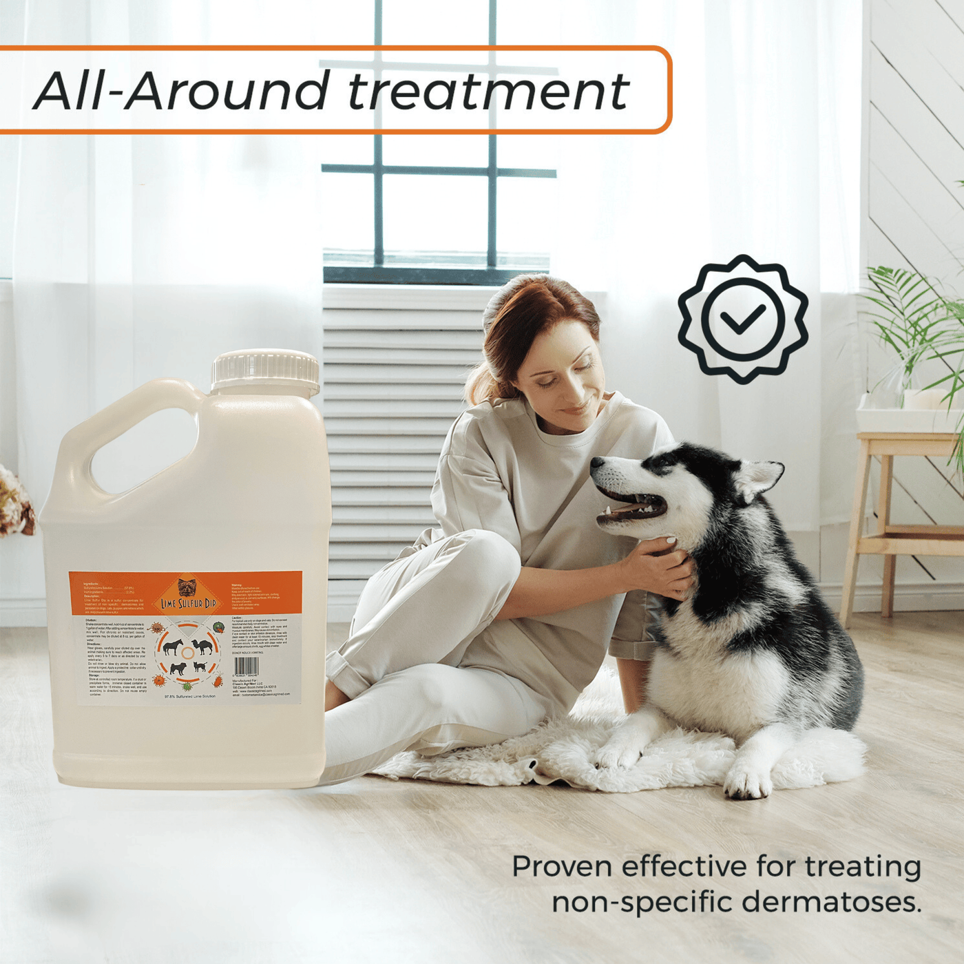 - ?? ALL-AROUND TREATMENT: Unsure of what’s causing your pet’s skin problems? Our lime sulfur dip has been proven effective for treating non-specific dermatoses and eliminating parasites.